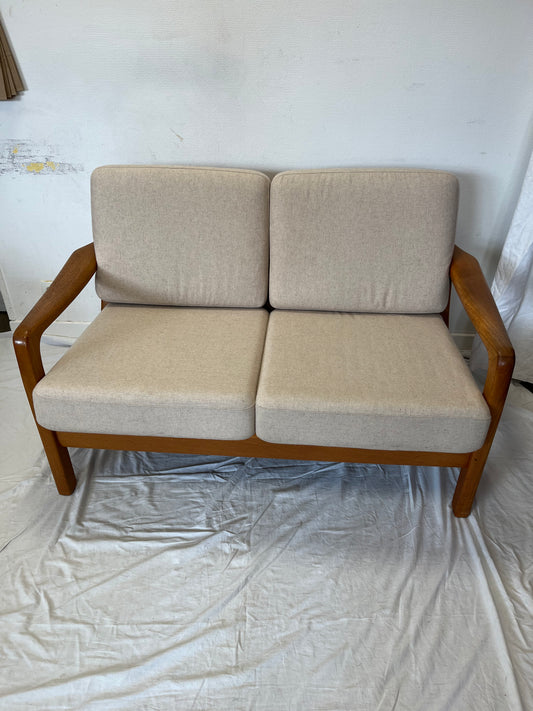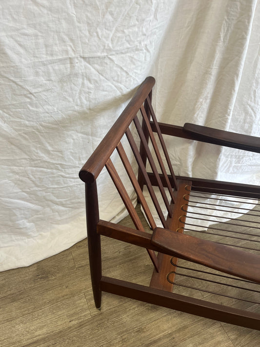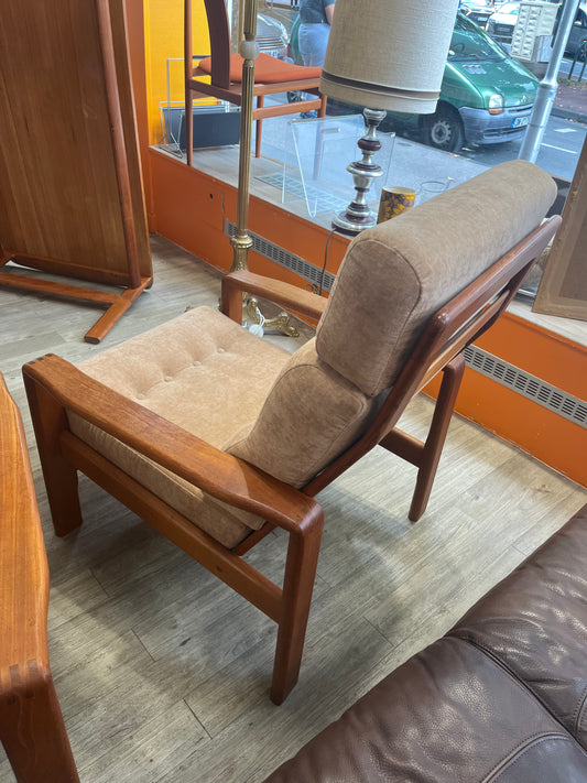 Fauteuil scandinave en teck massif avec ottoman 1960
