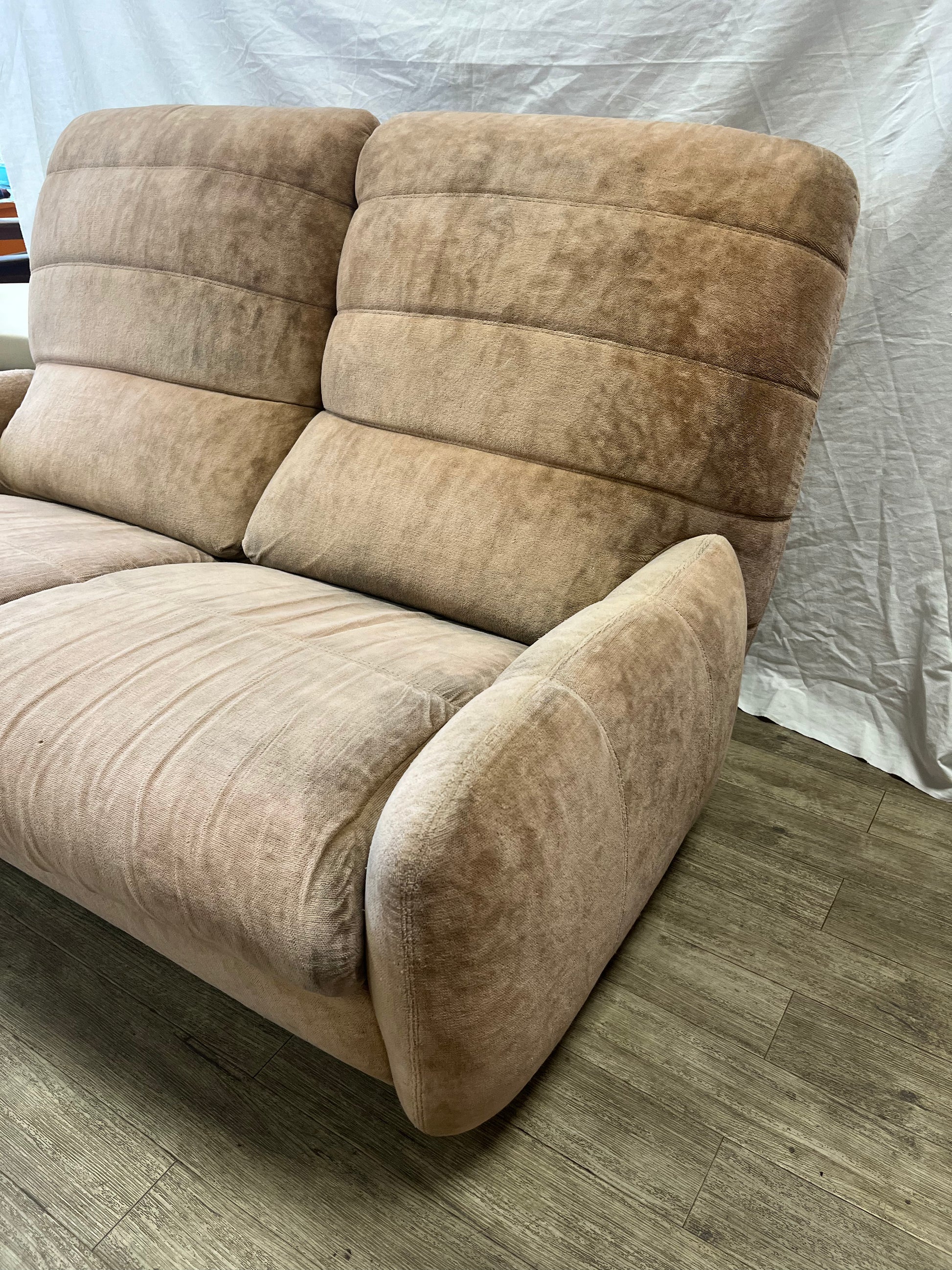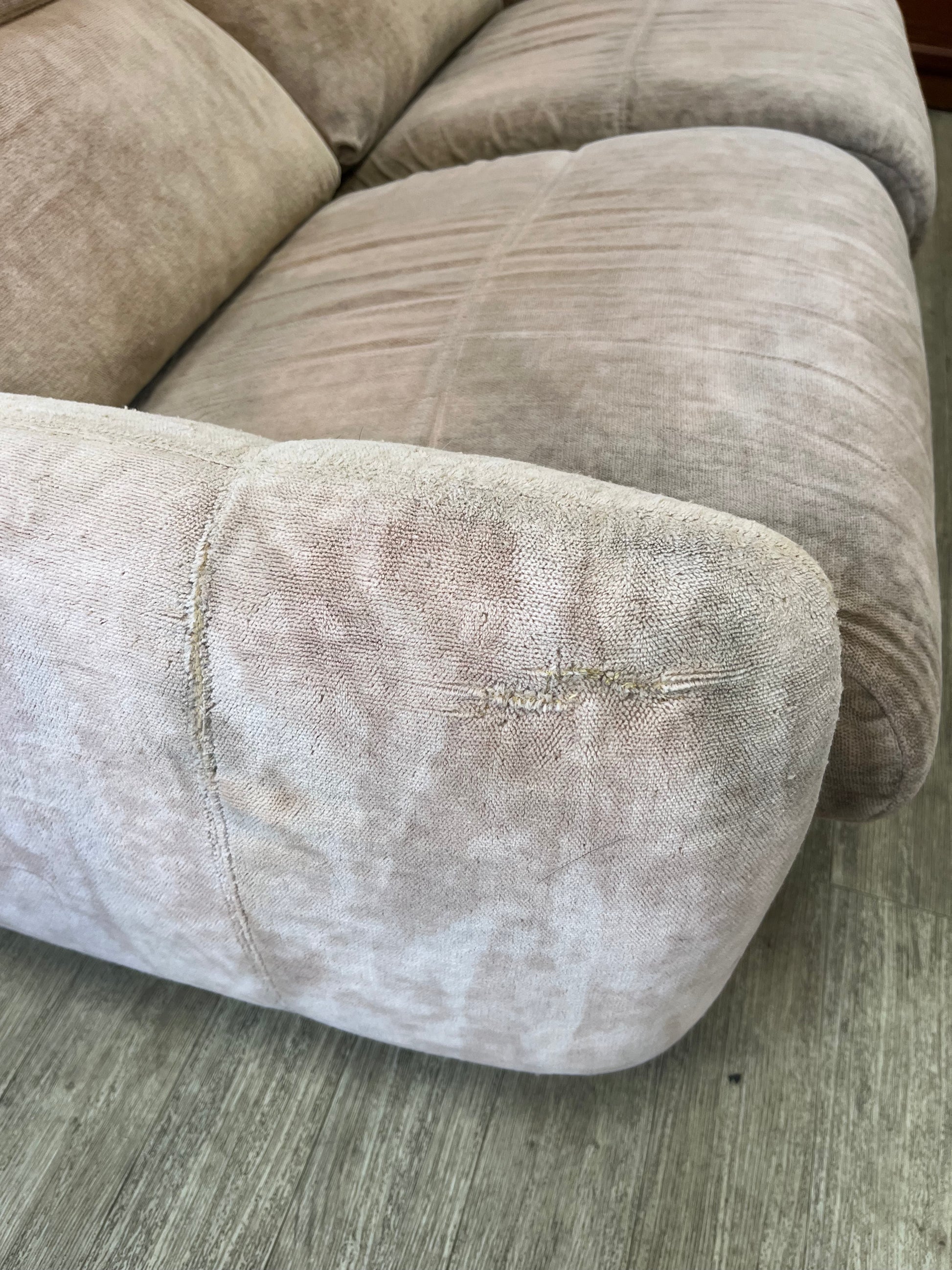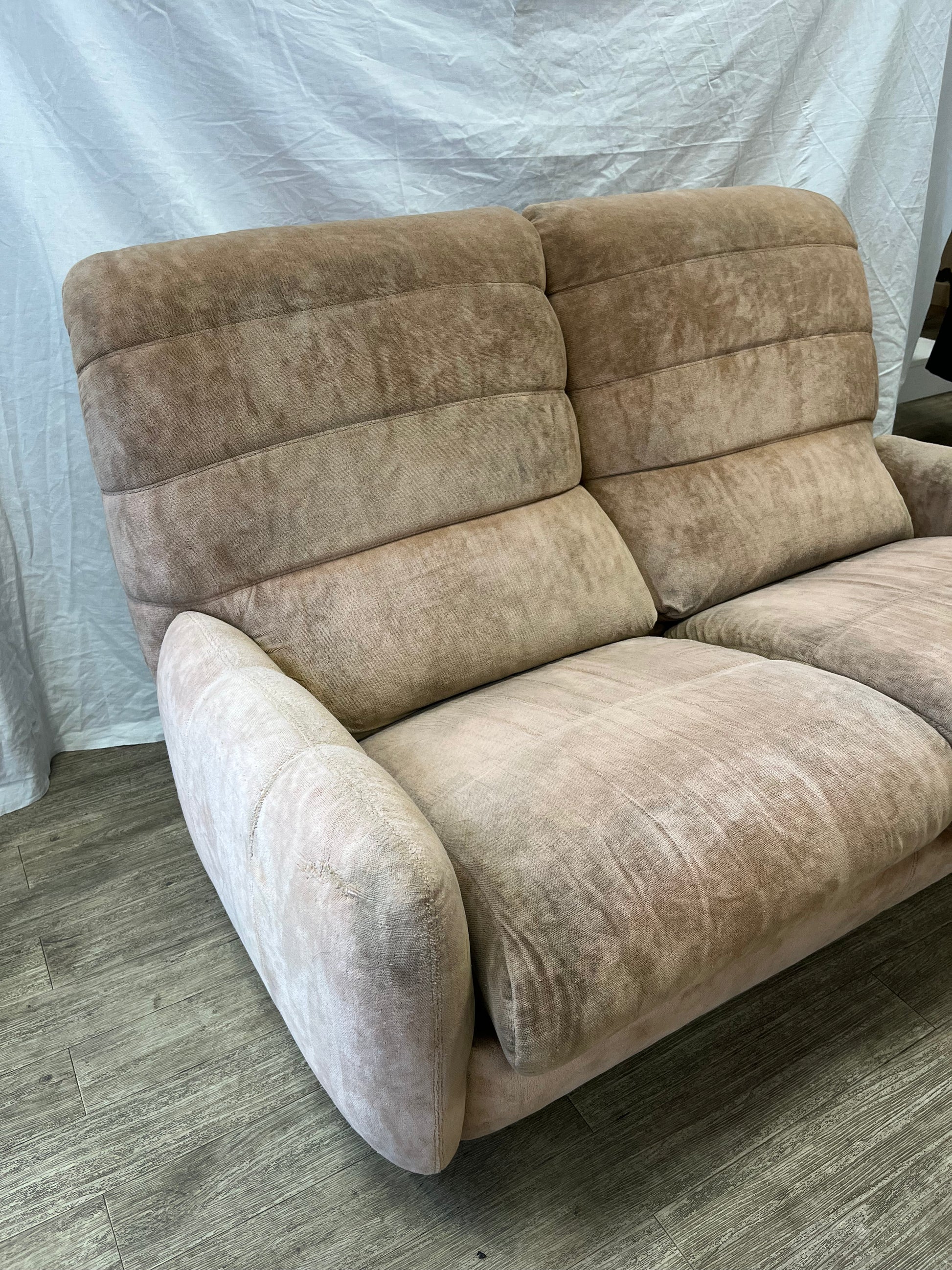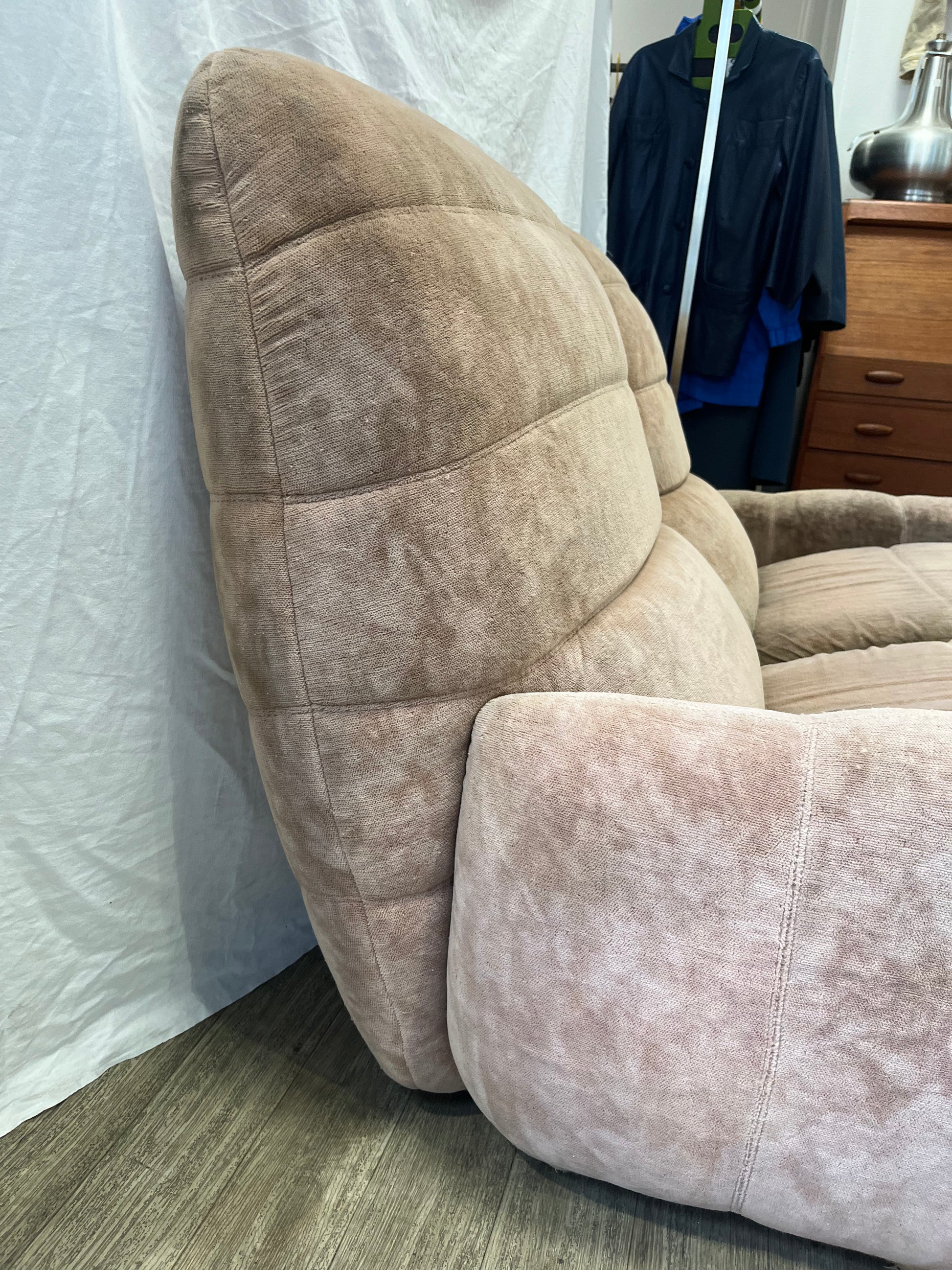 banquette deux places années 70’s en velours d’inspiration Marsala, Michel Ducaroy, Roche Bobois !
