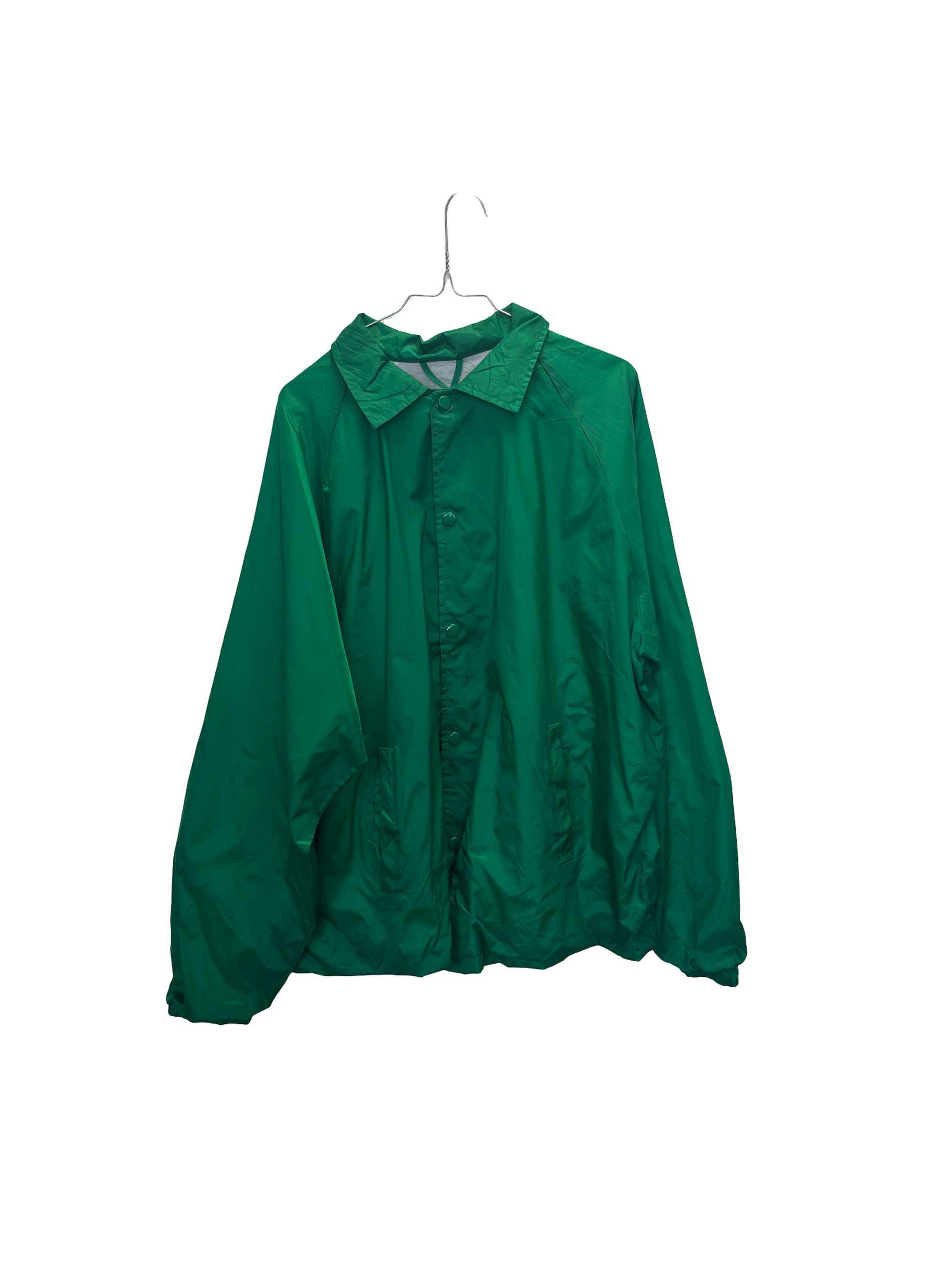 Blouson court vert vif, fermeture par boutons pressions, deux poches.