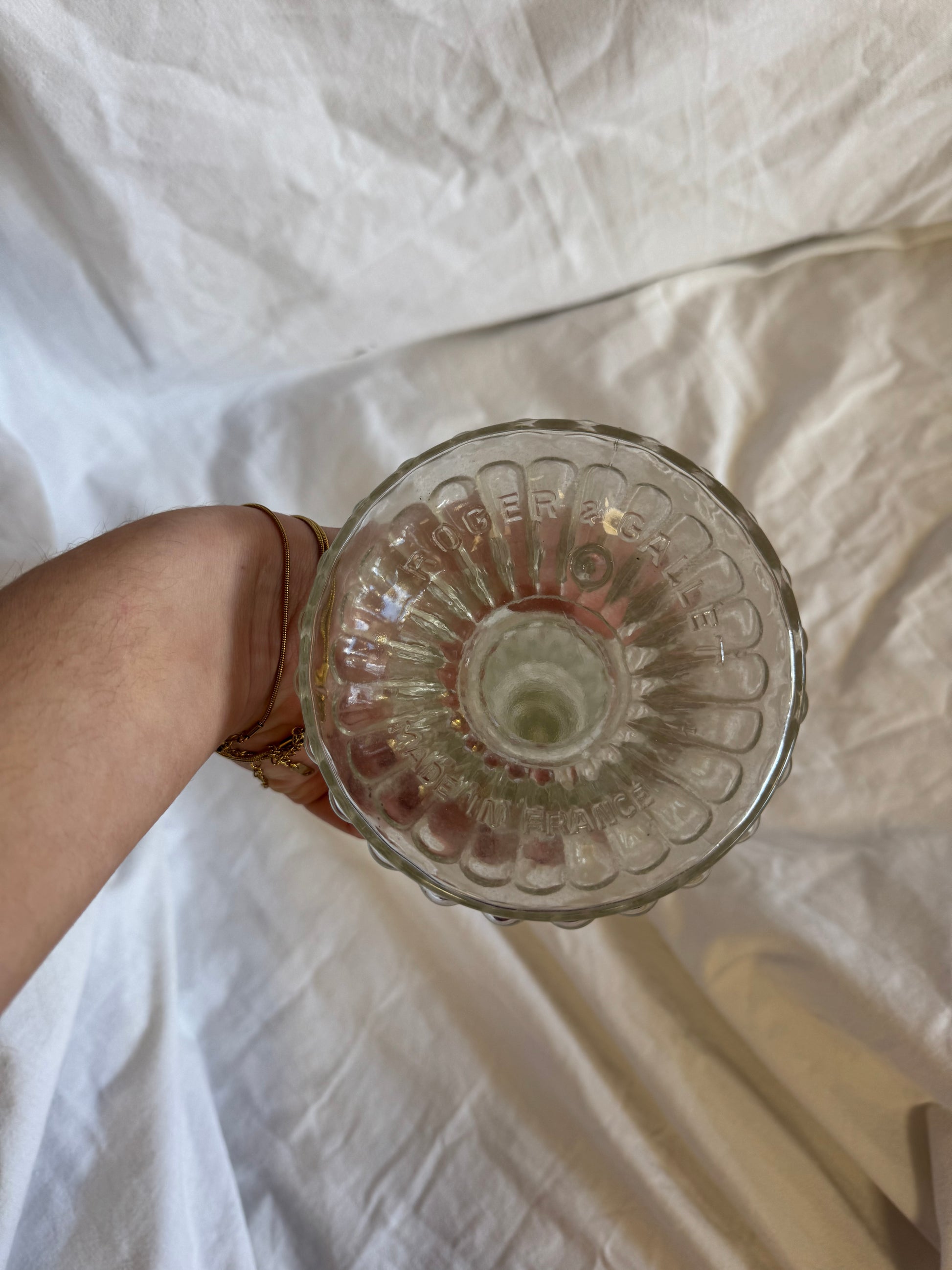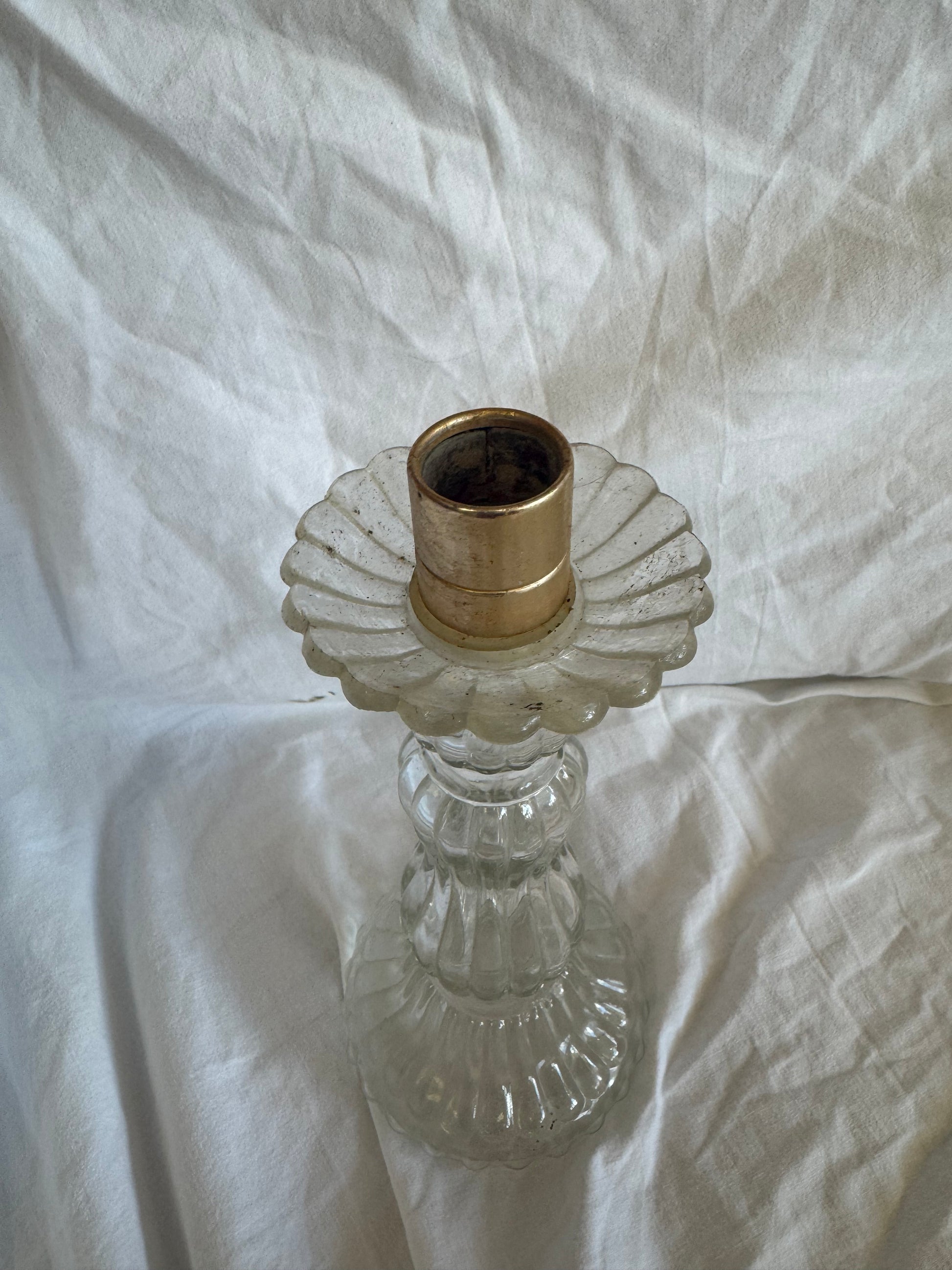 Bougeoir en verre transparent, ancien flacon de parfum.
