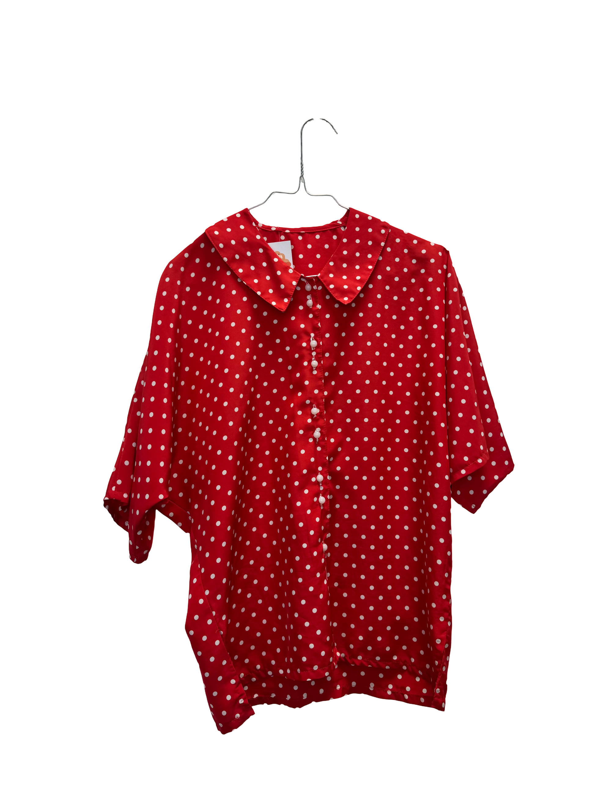Chemise à manche courte, rouge à pois blanc,, boutons blanc.