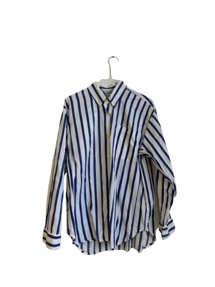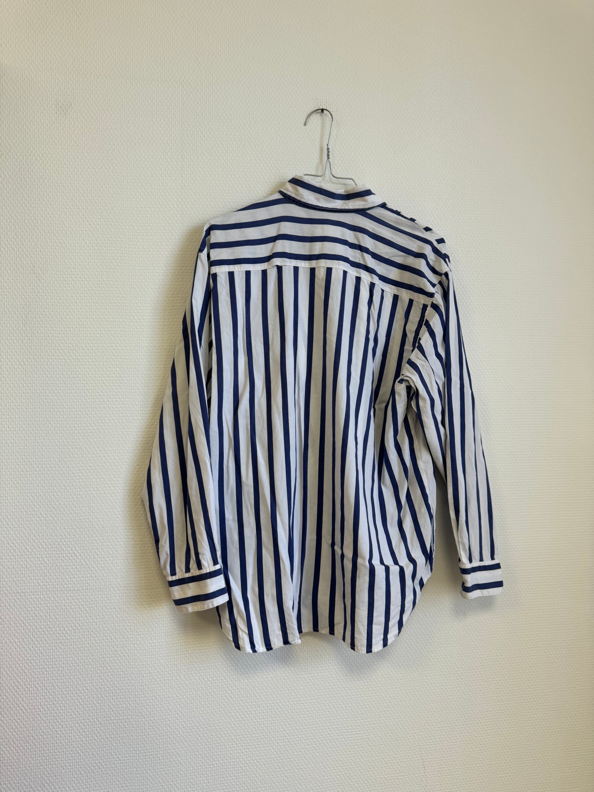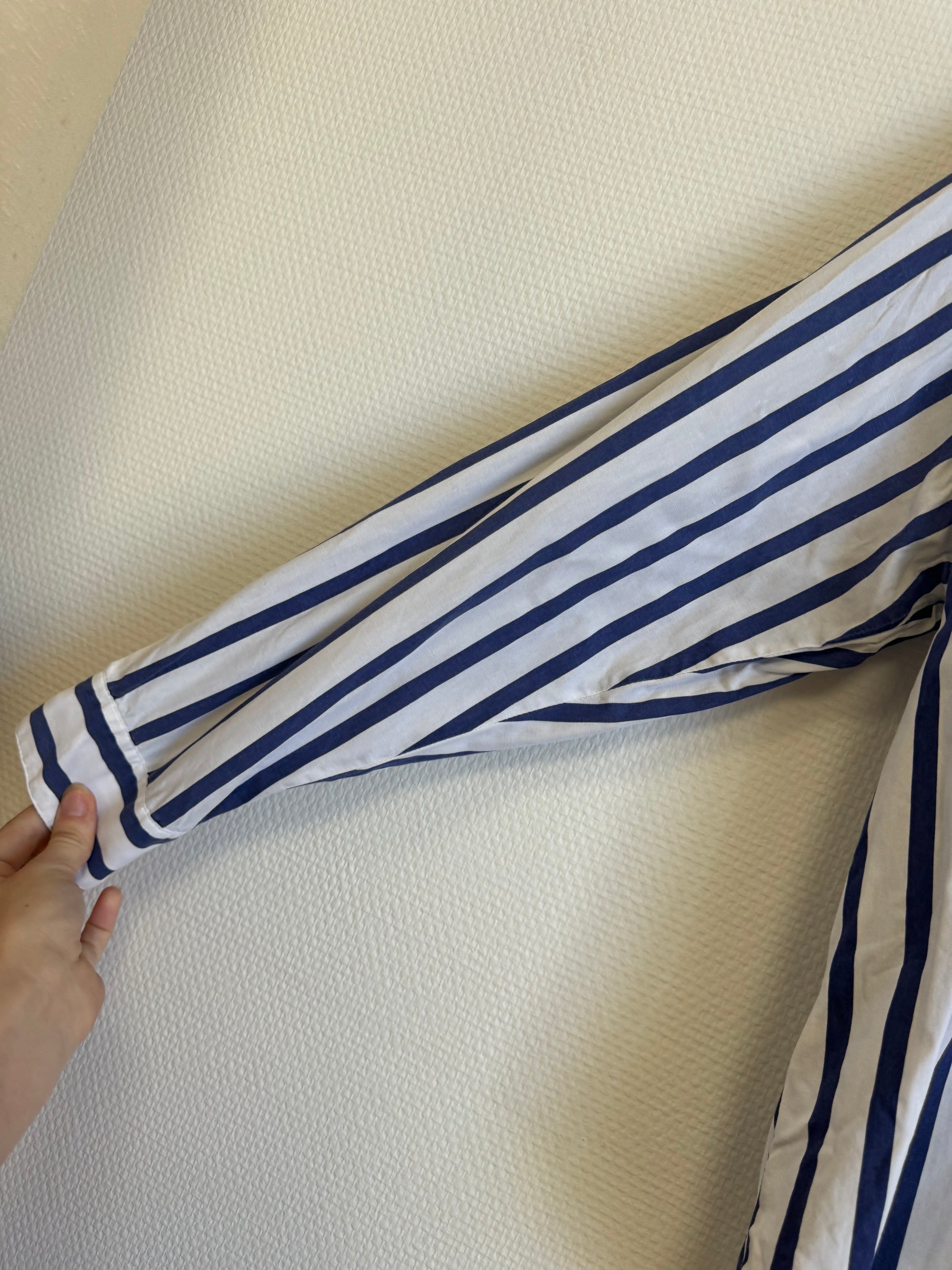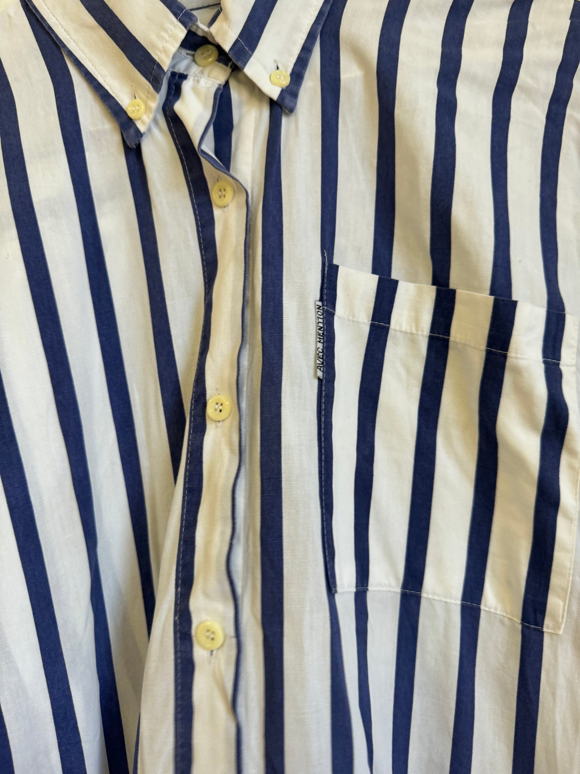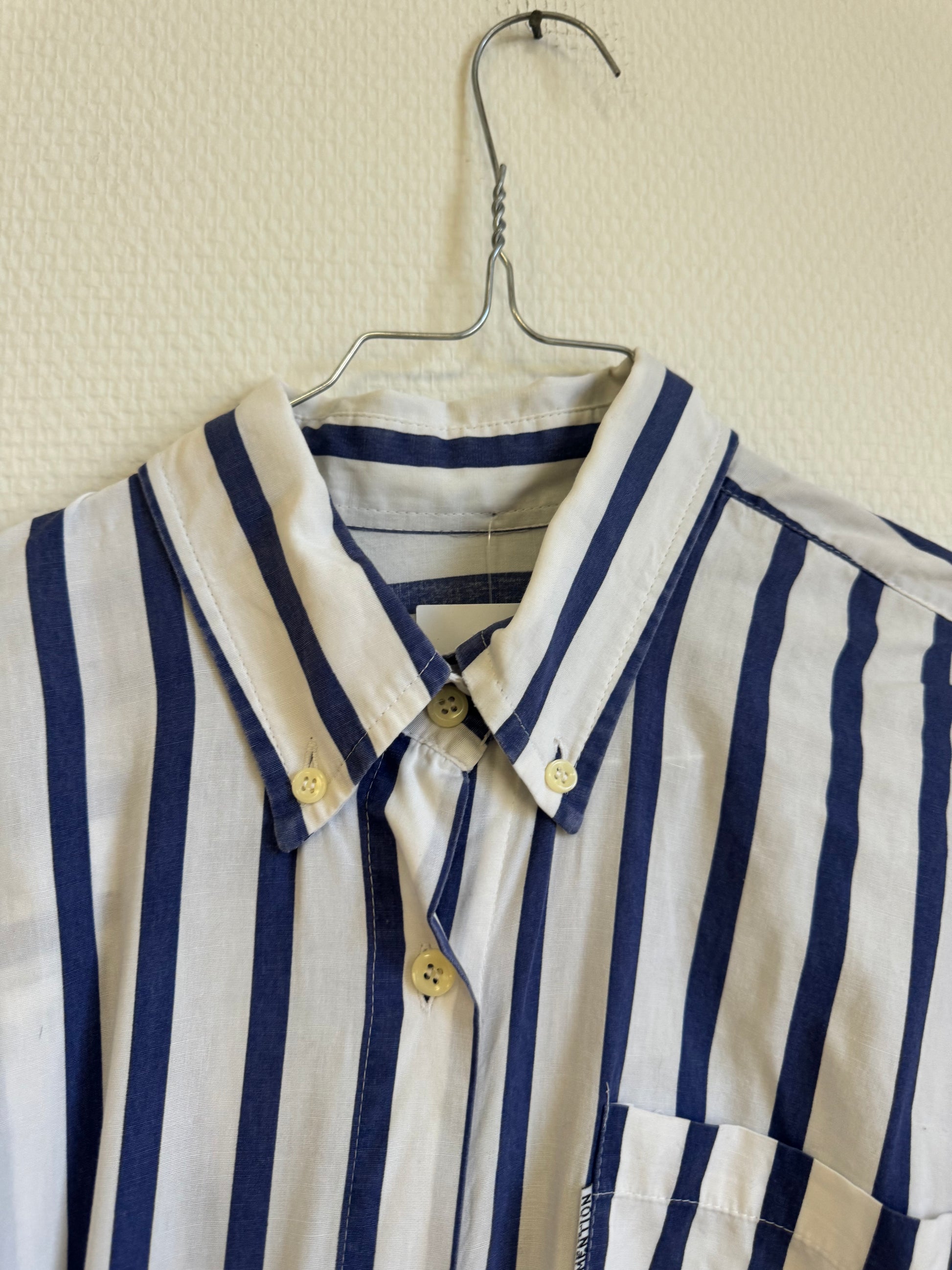 Chemise à rayures des années 80, blanche et bleu, une poche.