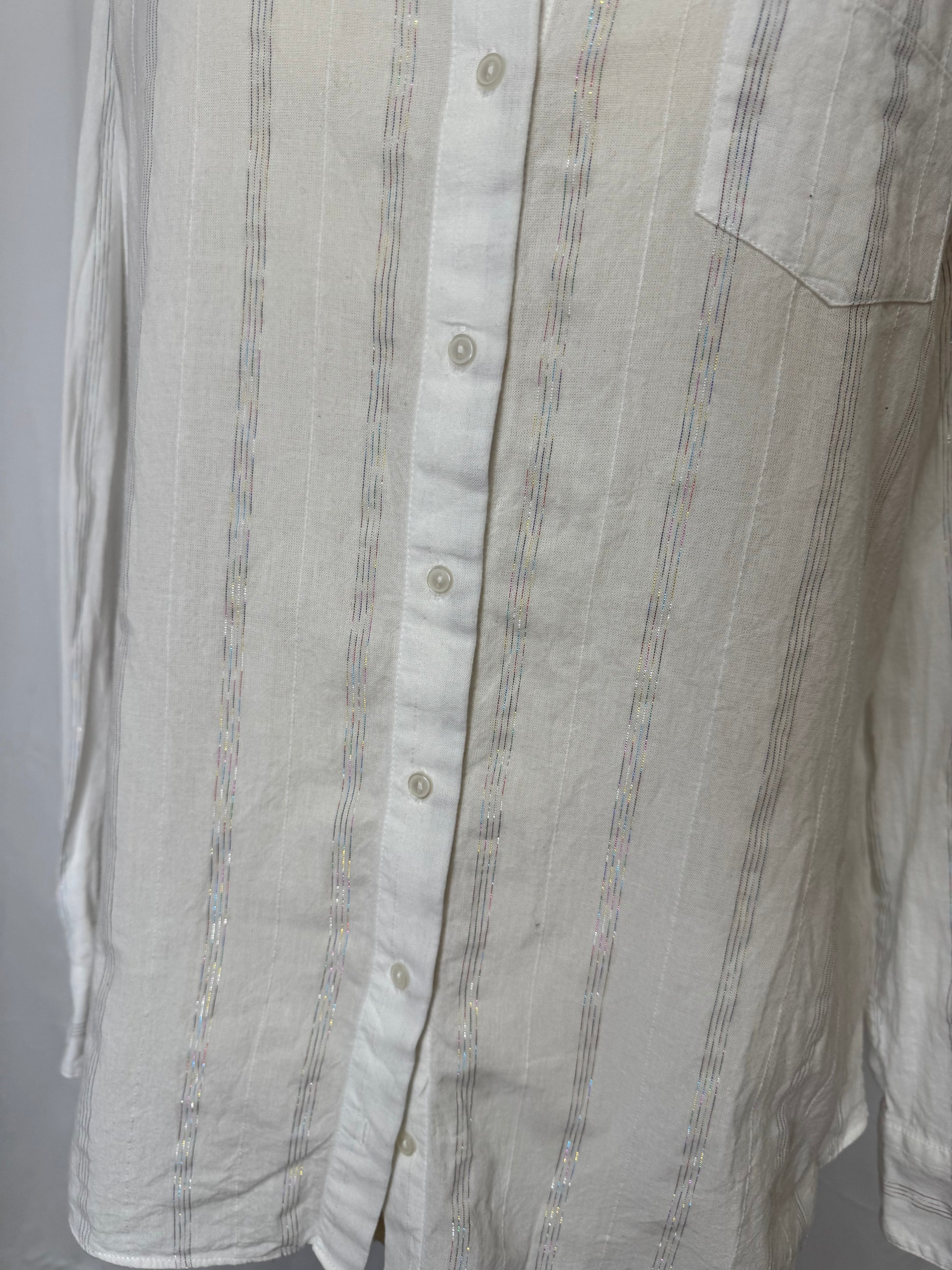 Chemise blanches à rayures brillante multicolore, une petite poche sur l'avant.