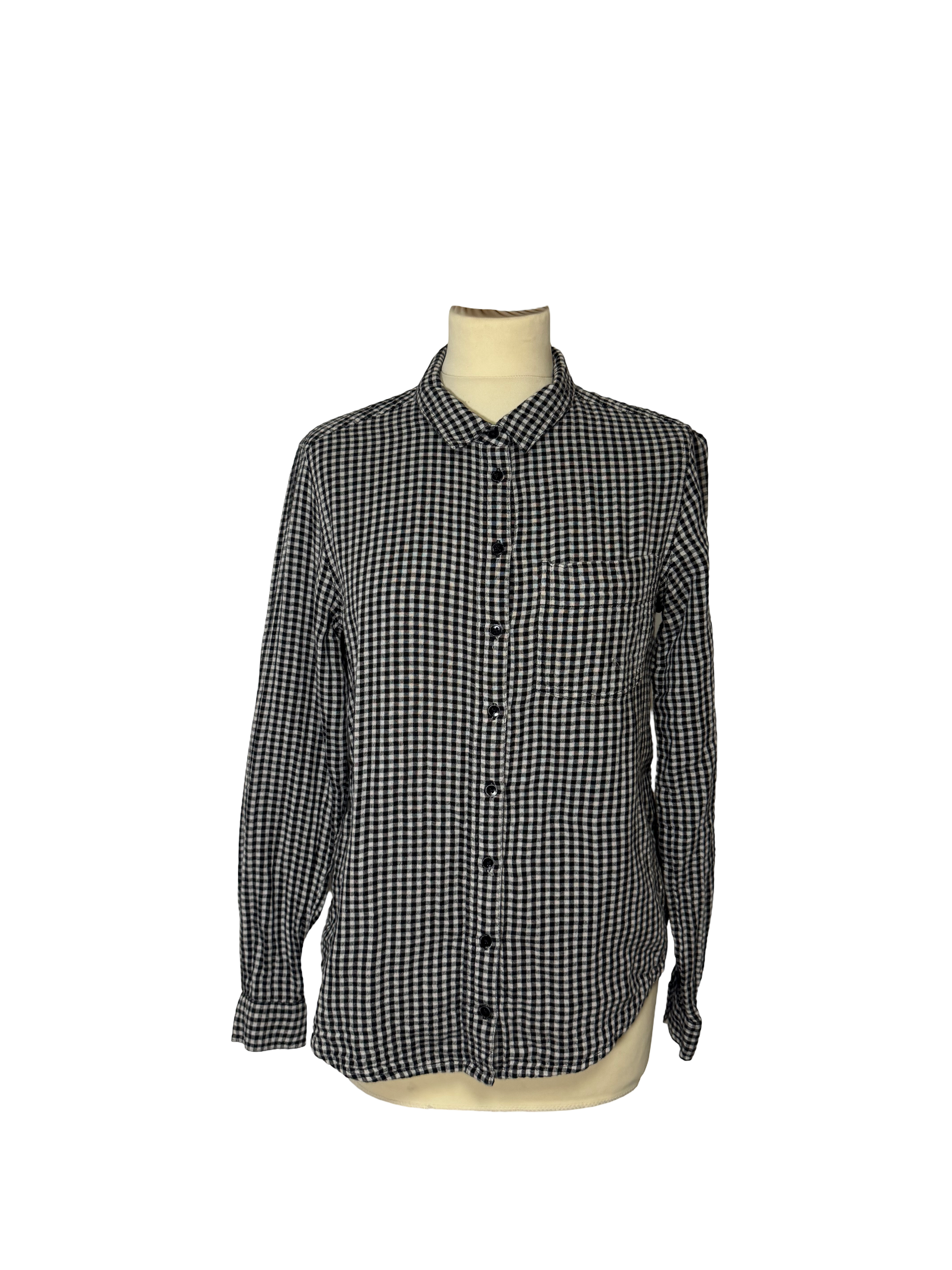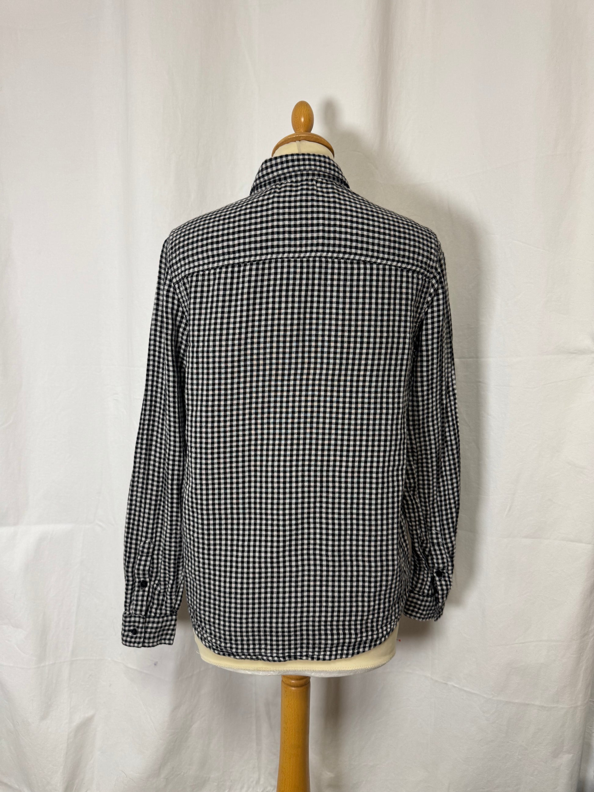 Chemise à manches longues, à carreaux noir et blanc, une poche sur l'avant.