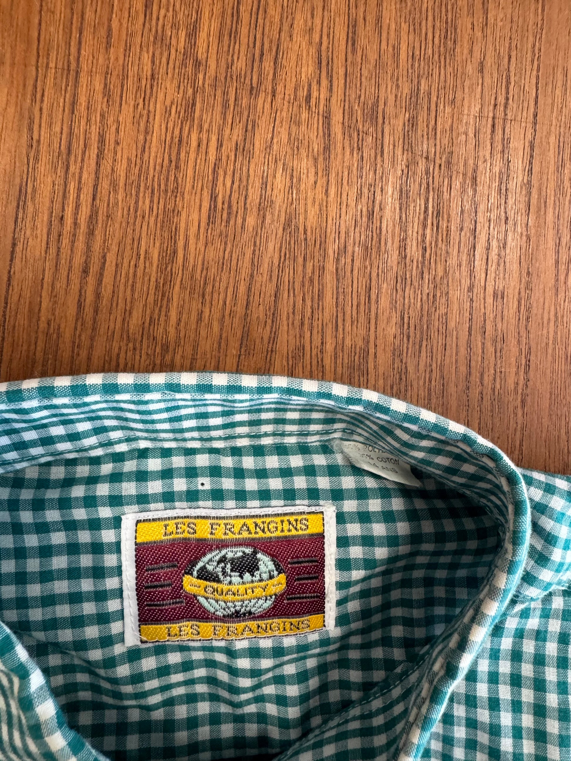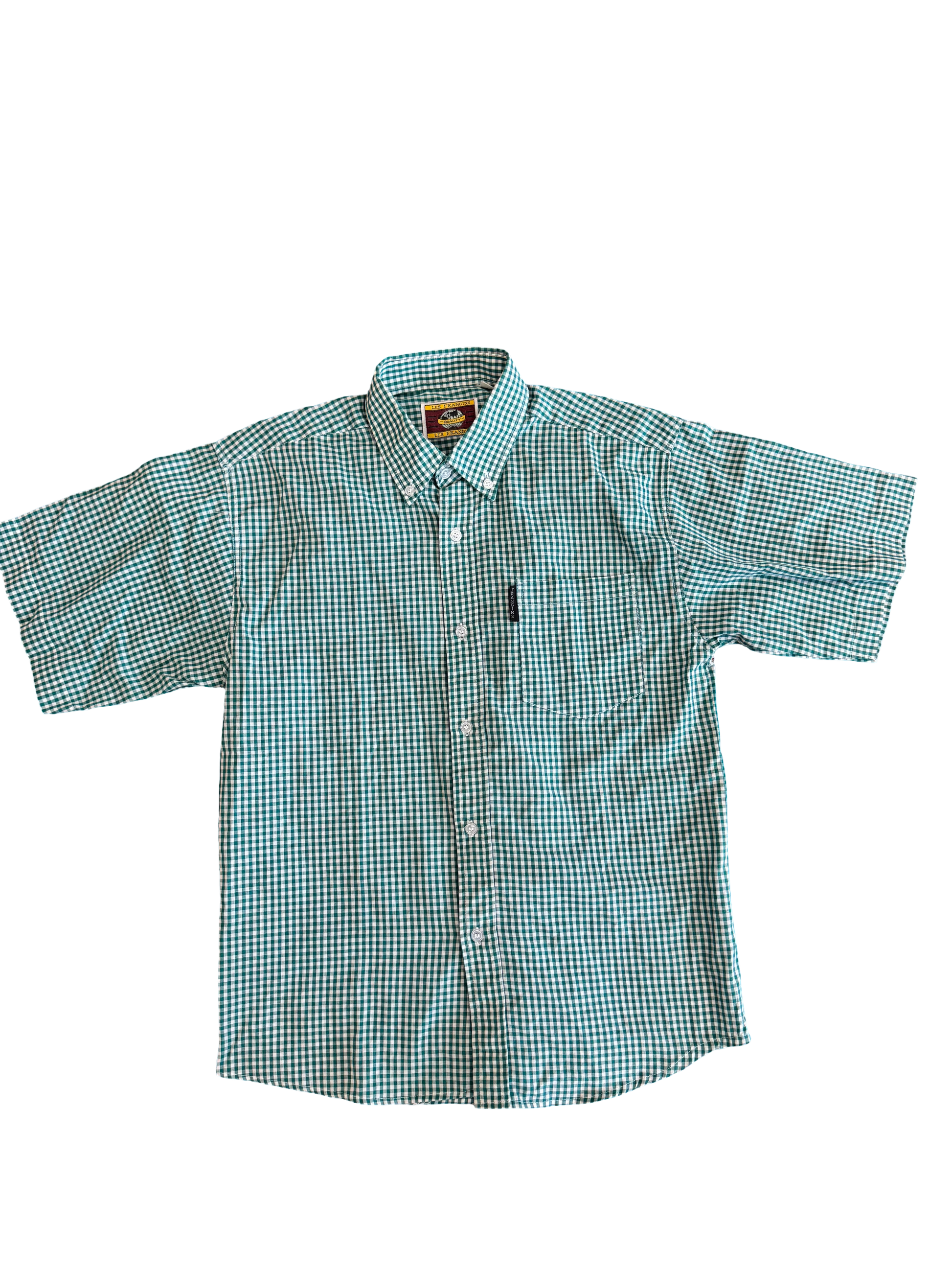 Chemise à manches courtes, carreaux vert et blanc, une petite poche sur l'avant.