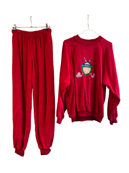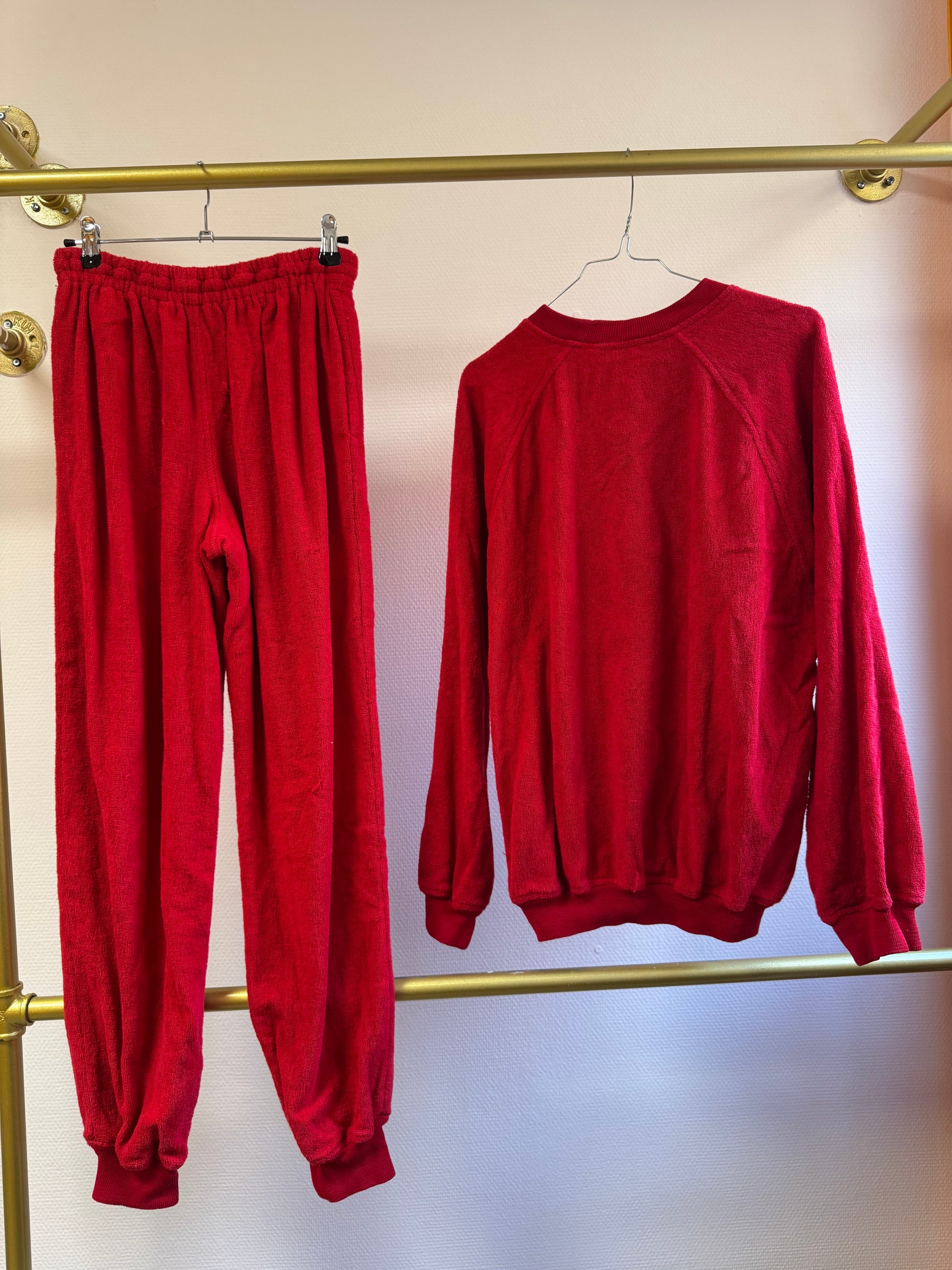 Ensemble de survêtement / loungewear, en éponge rouge.