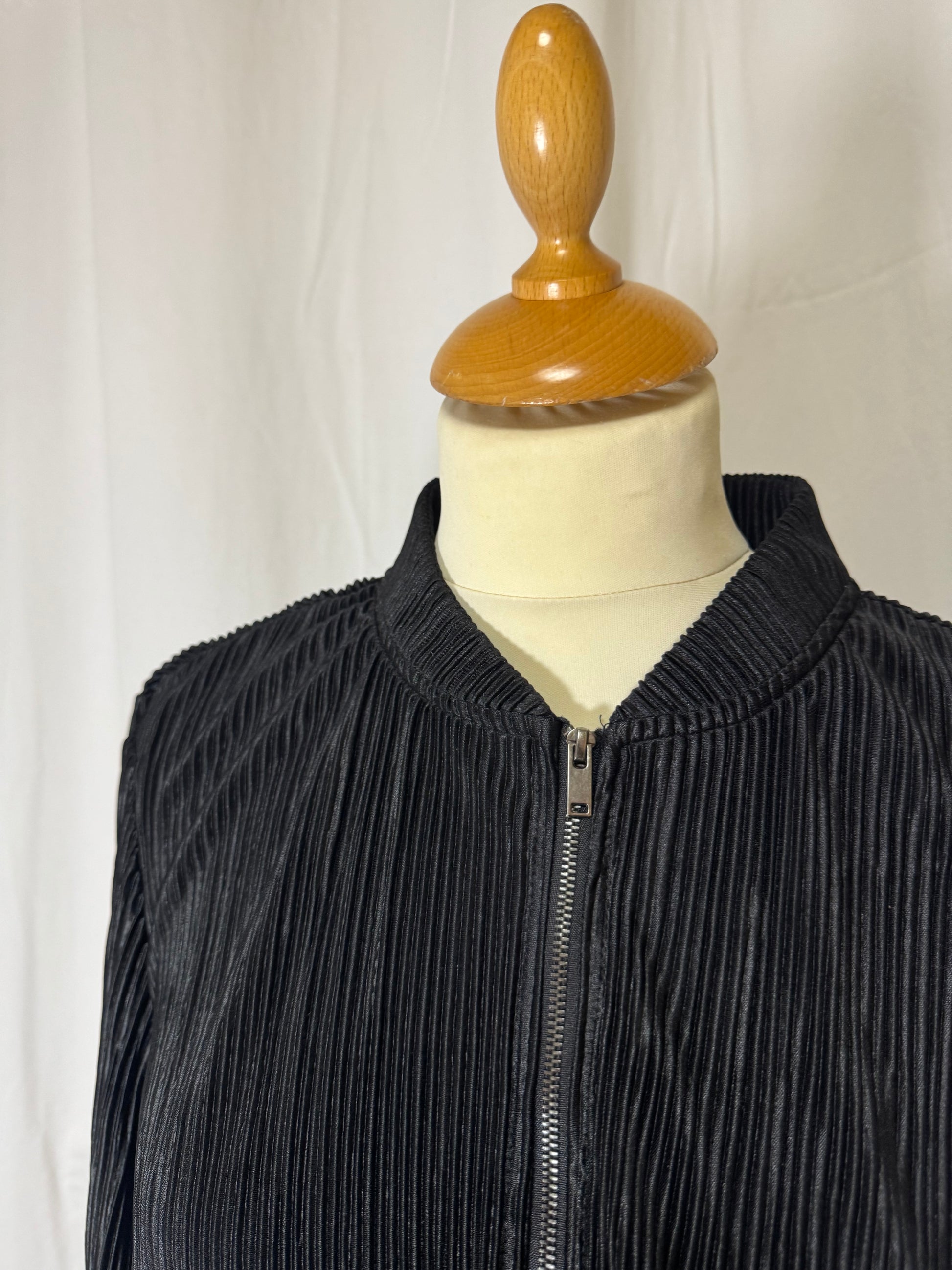 Gilet plissé noir, fermeture éclair, années 80, élastique sur le bas.