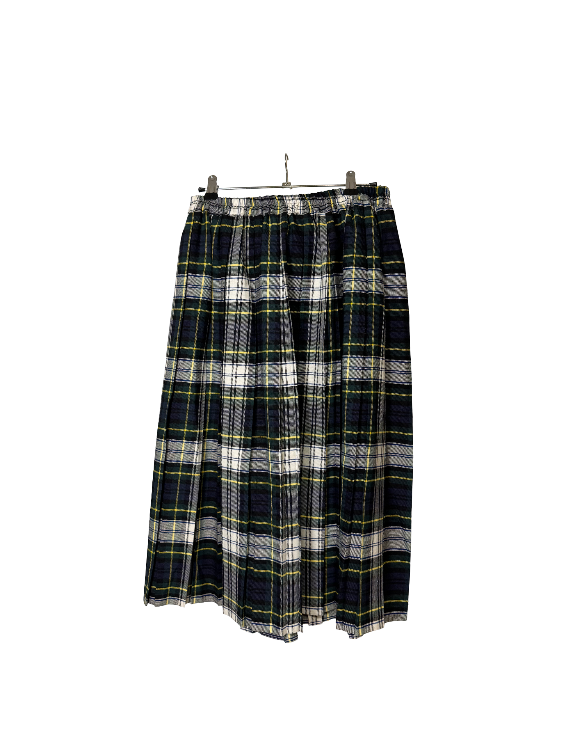 Jupe mi longue, écossaise vert et bleu, taille élastique.