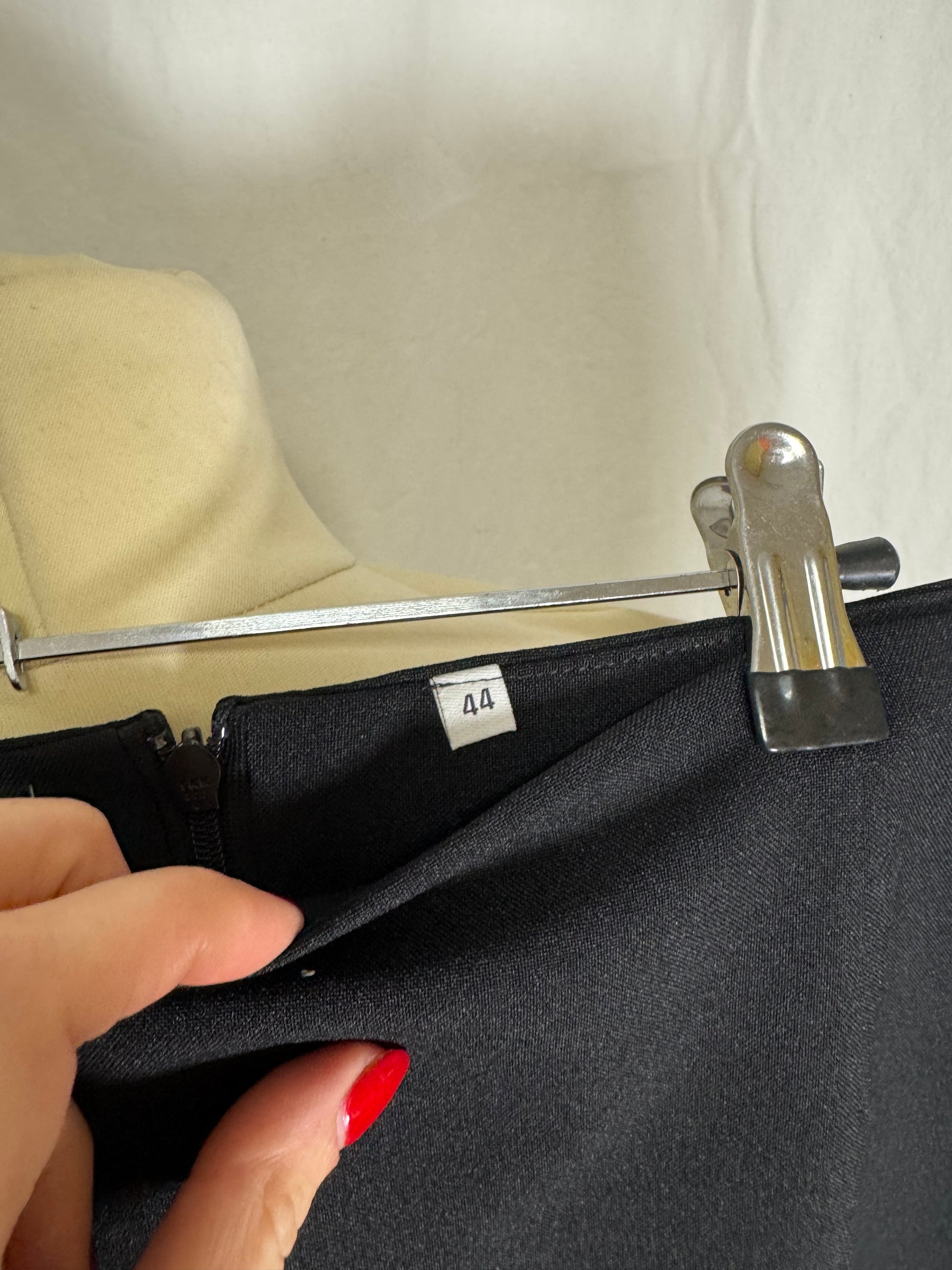 Mini jupe noir uni, fermeture éclair dans le dos.