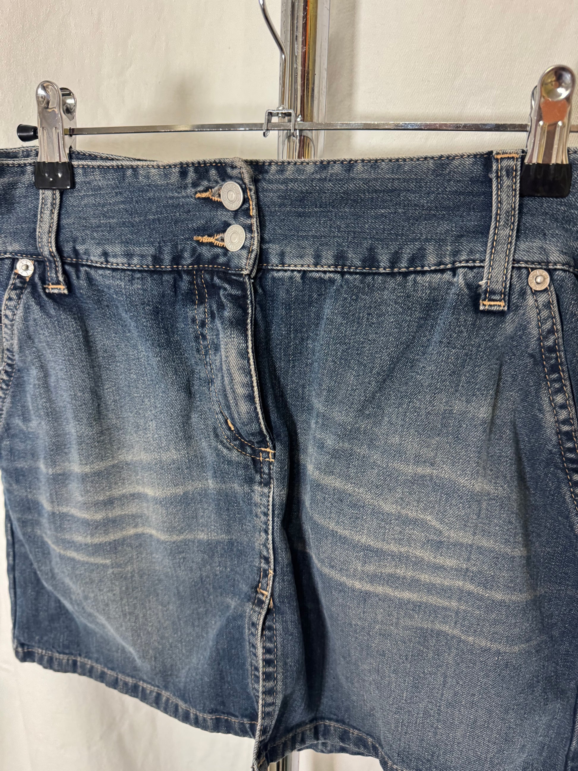 Mini jupe en jeans, deux poches, une fente sur l'avant.