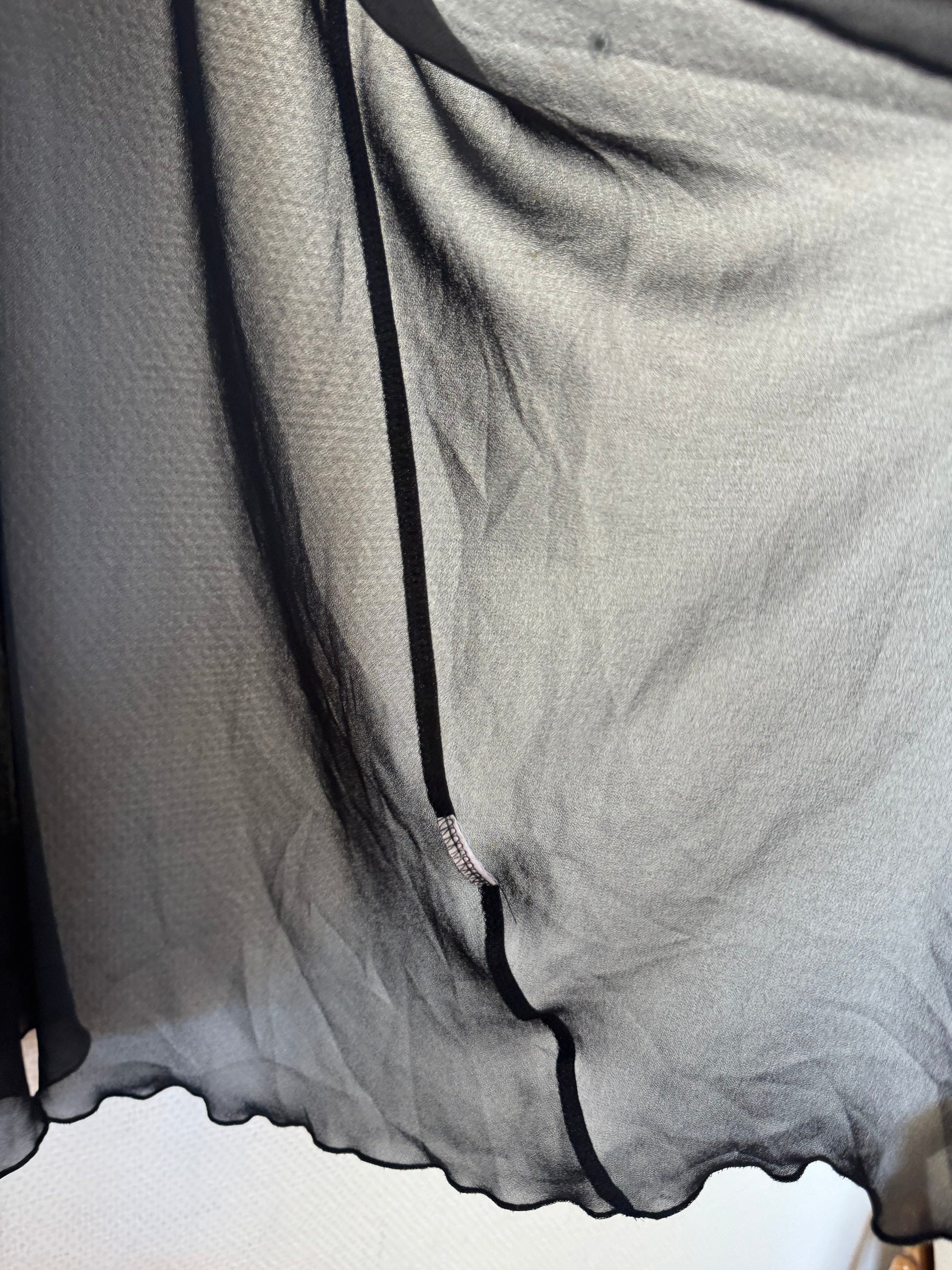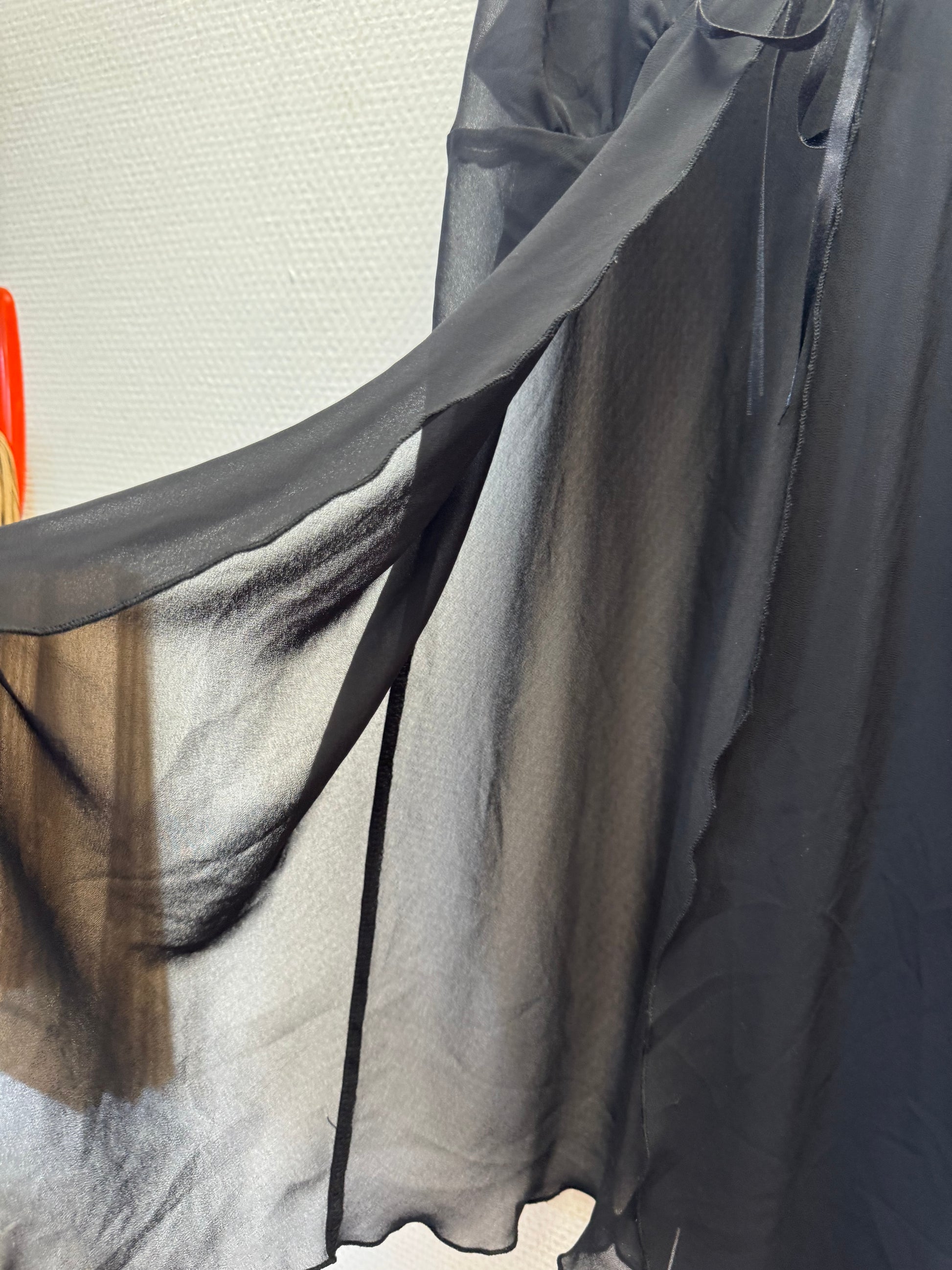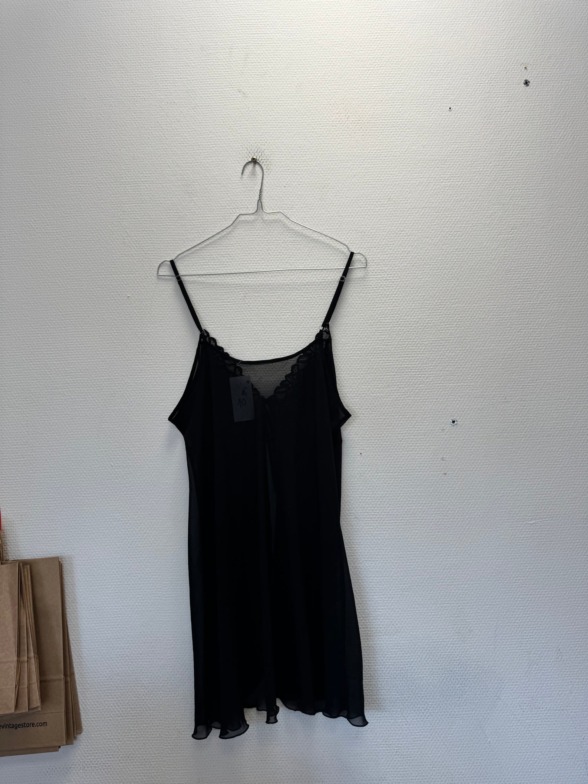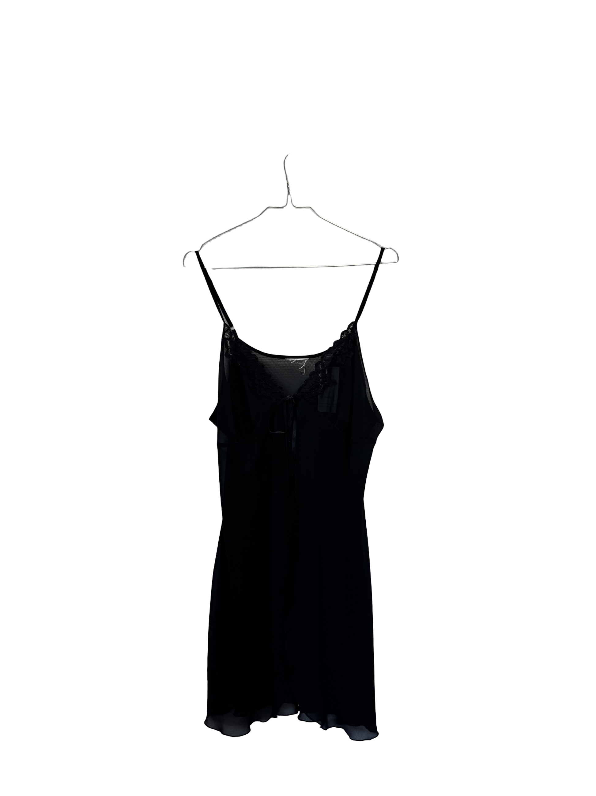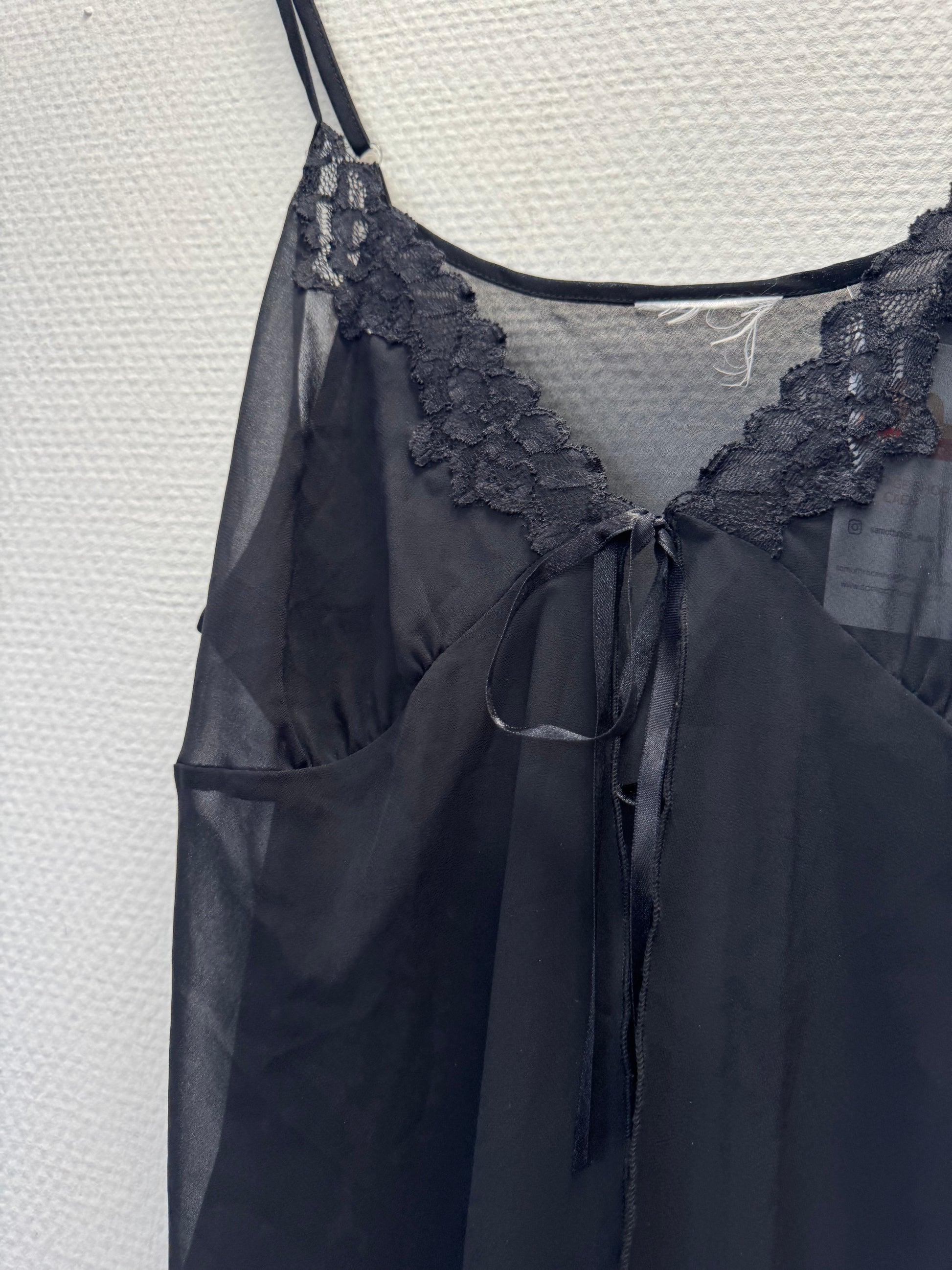 Nuisette à bretelle ajustable, fermeture par un noeud sur l'avant, noire transparente.