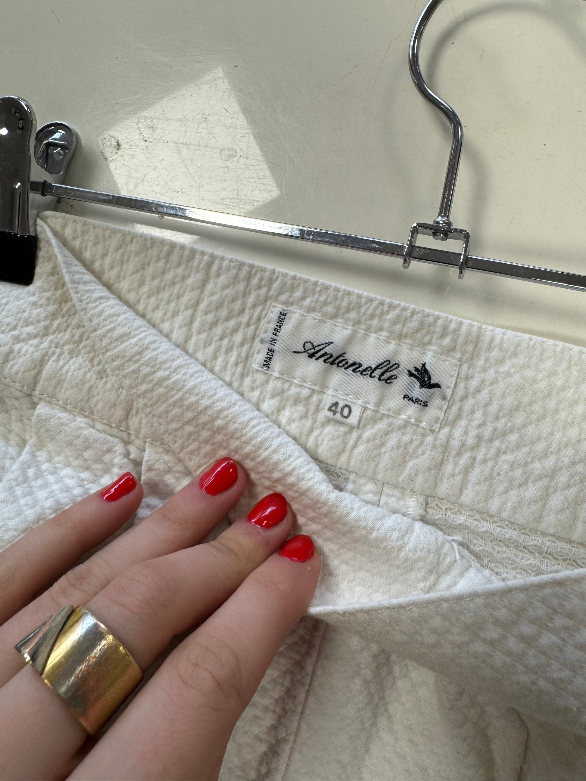 Pantalon ajustée des années 80, gaufré, deux poches, fermeture éclair sur le côté.