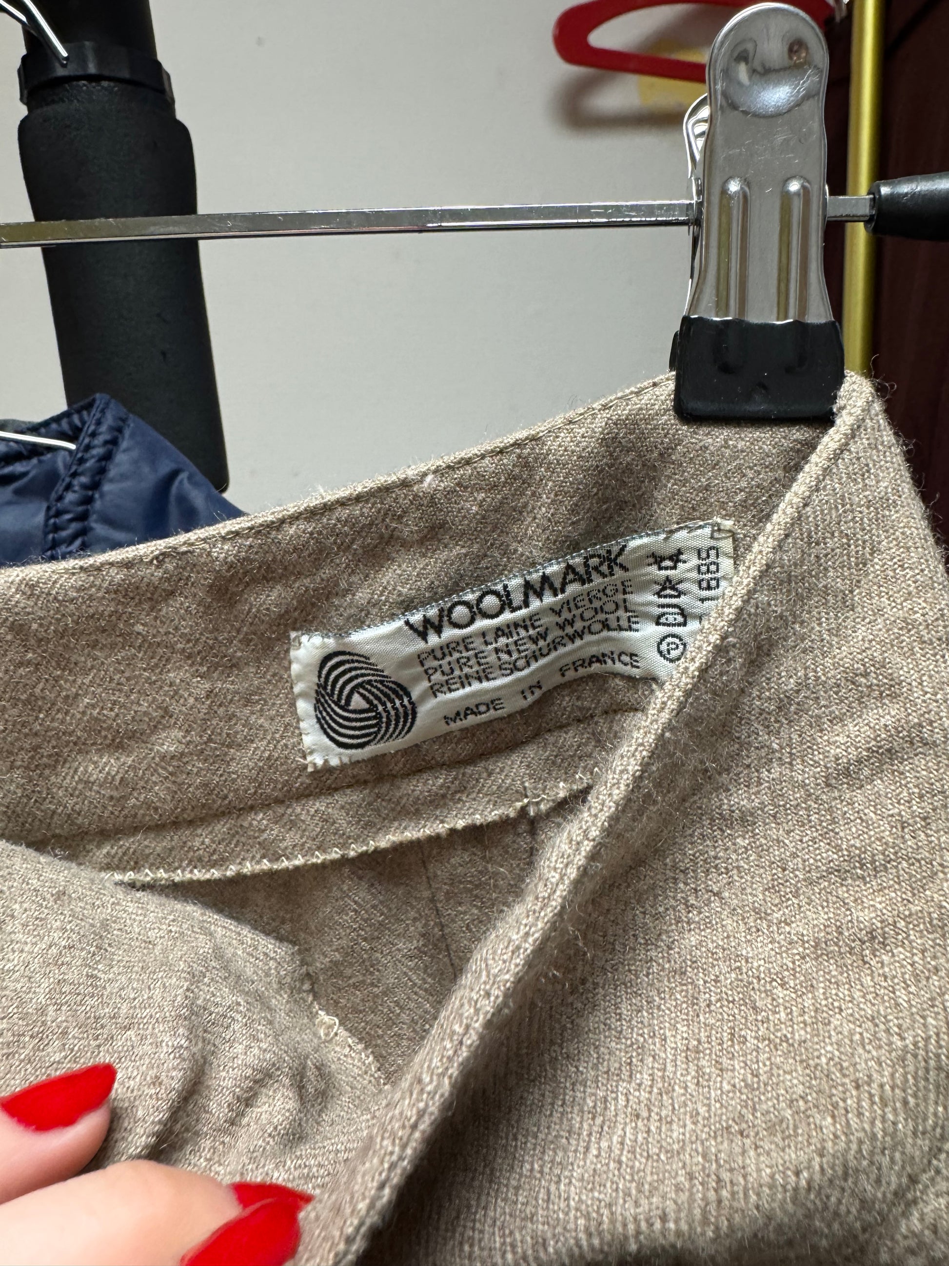 Pantalon à jambe large/ajustée, taille haute, deux poches, double boutonnage, beige,