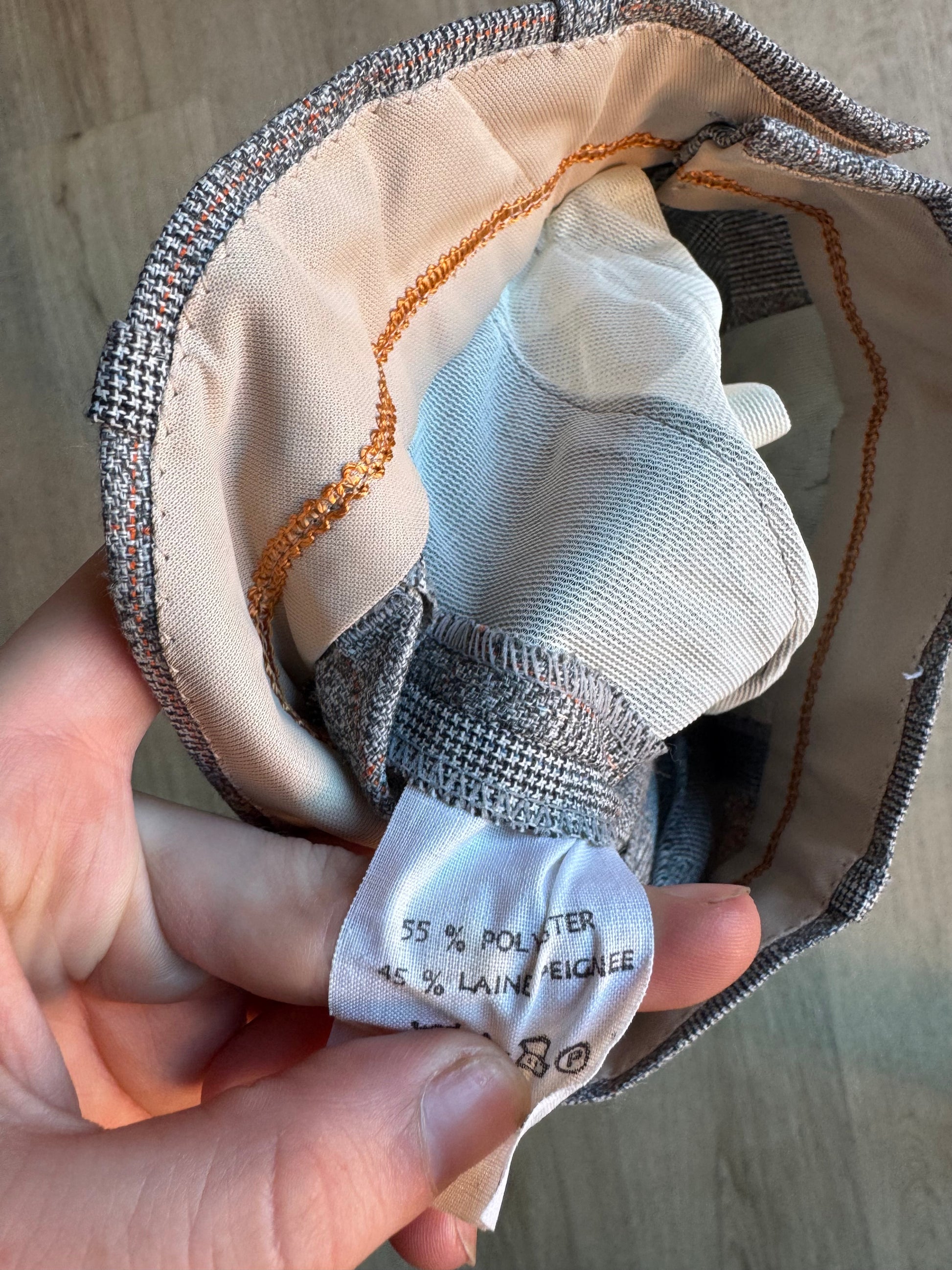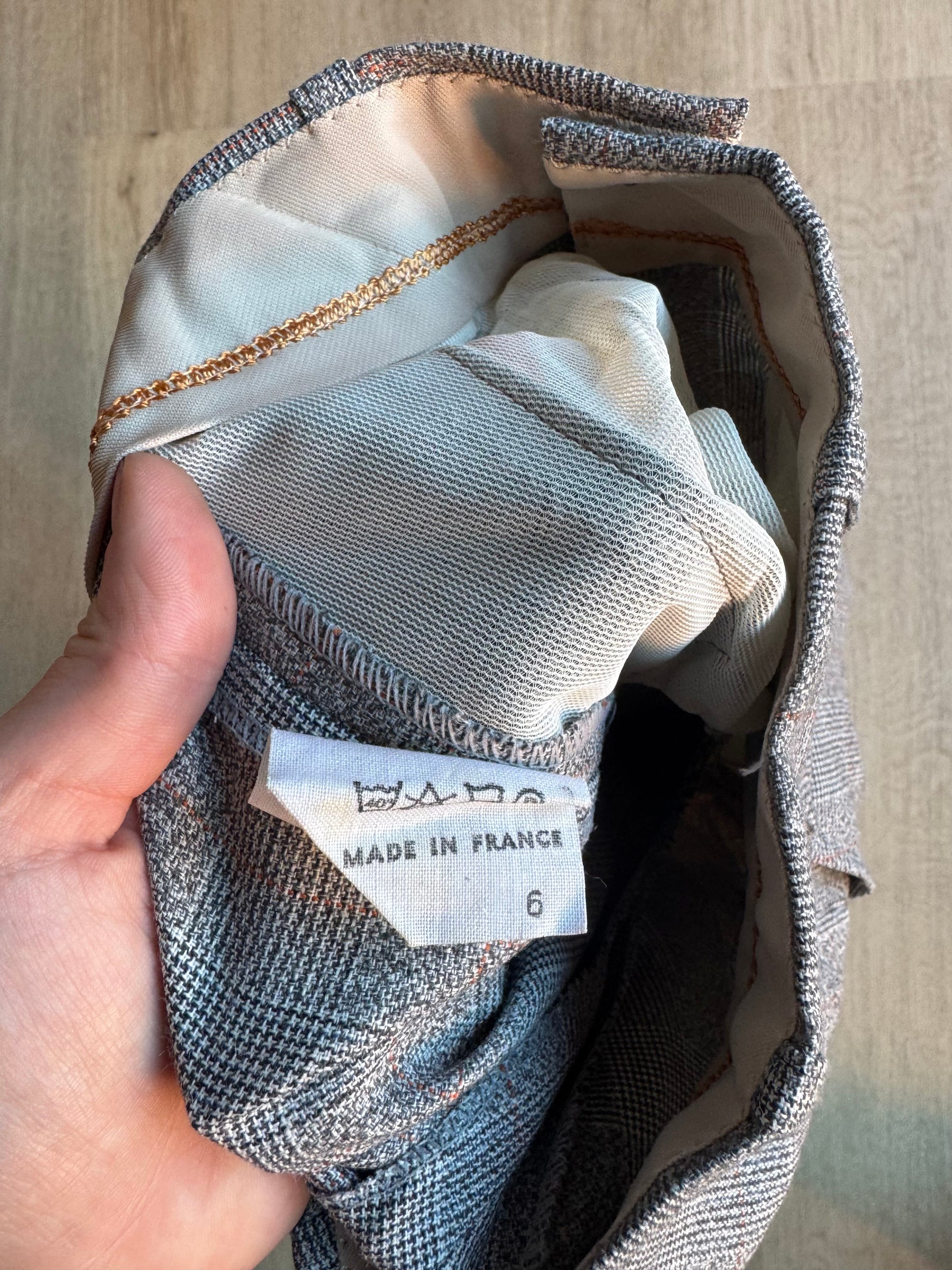 Pantalon à carreaux gris, imprimé pince de galles, deux poches, passant pour une ceinture, patte d'eph.