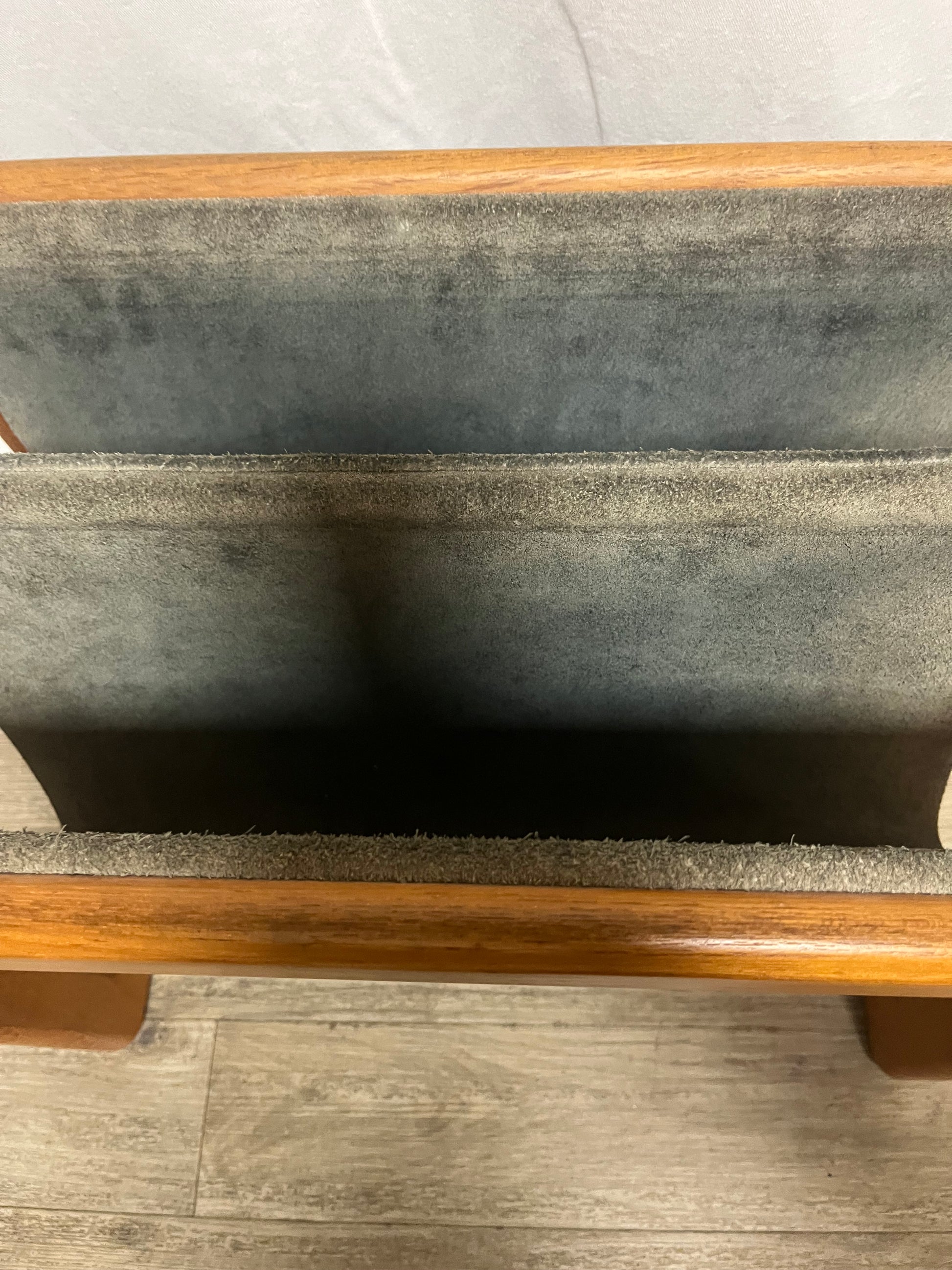Porte revues scandinave en teck massif et cuir d’origine années 70’s. Design d’aksel kjesgaard