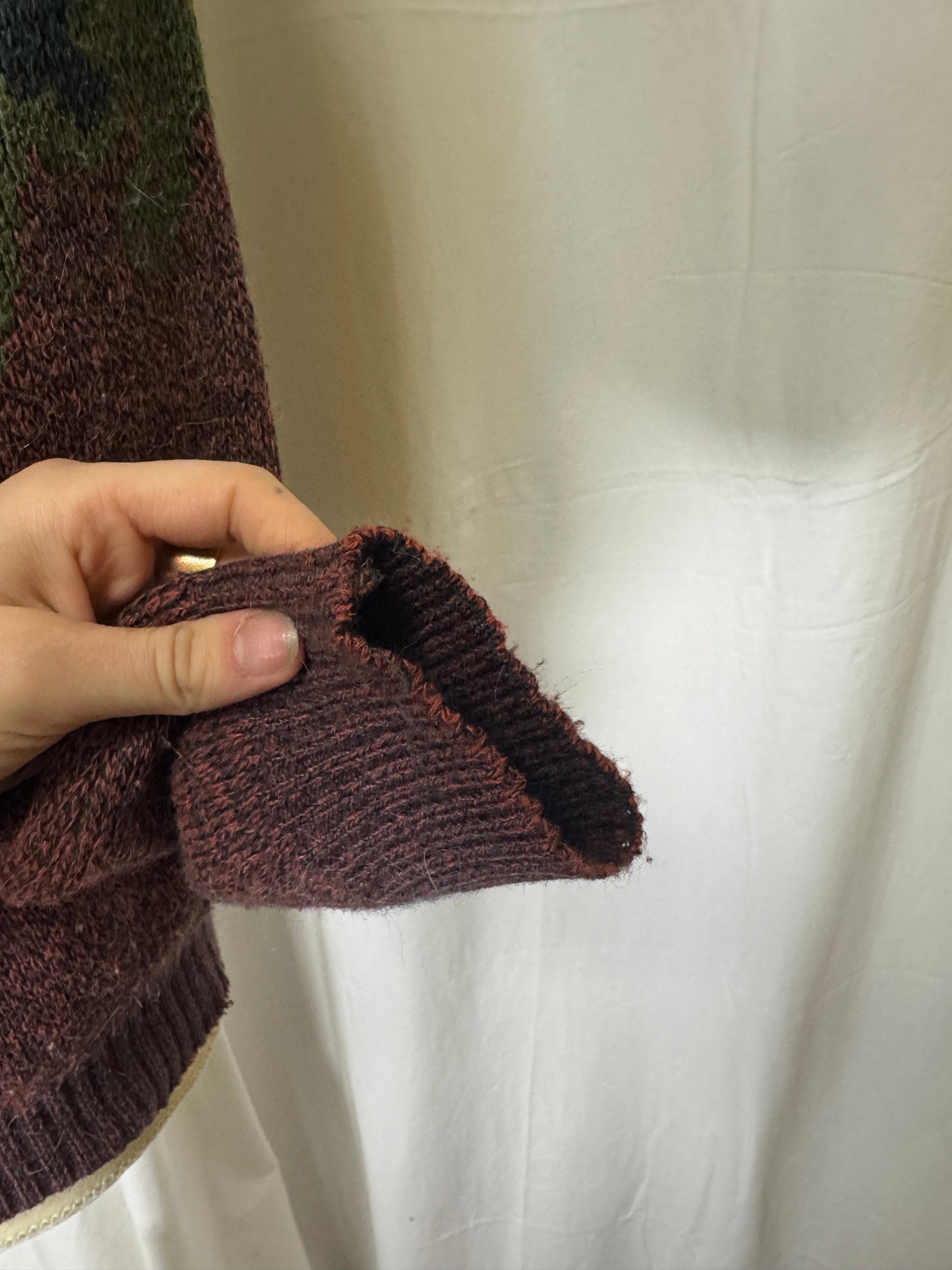 Pull à motifs des années 90, bordeaux et vert, col rond,
