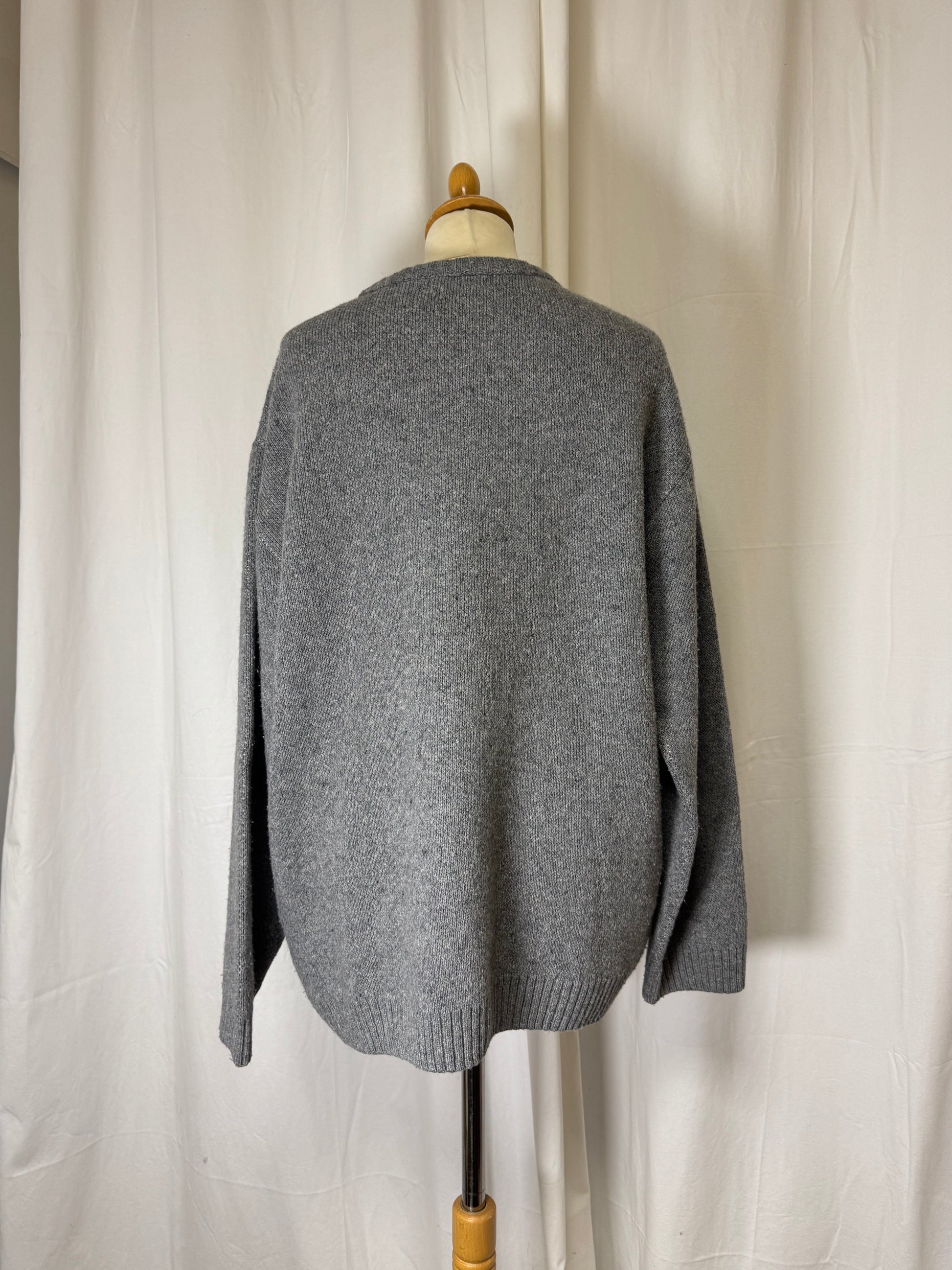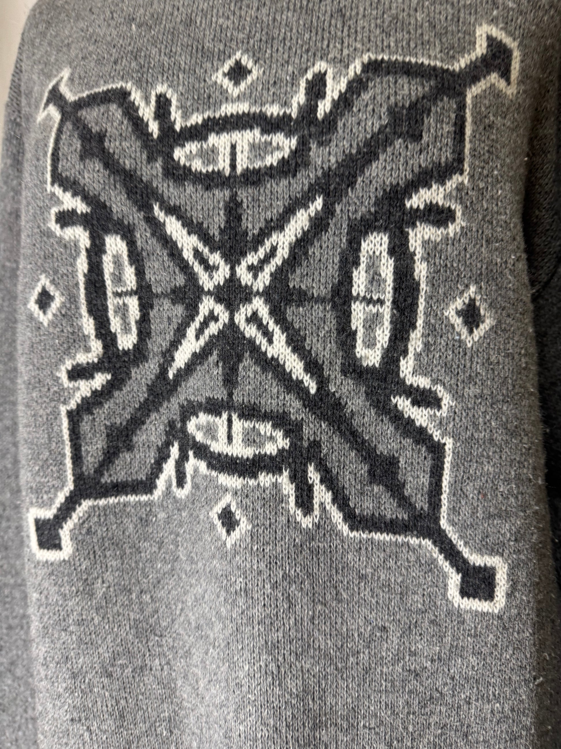 Pull gris à motifs géométrique sur l'avant, col rond.