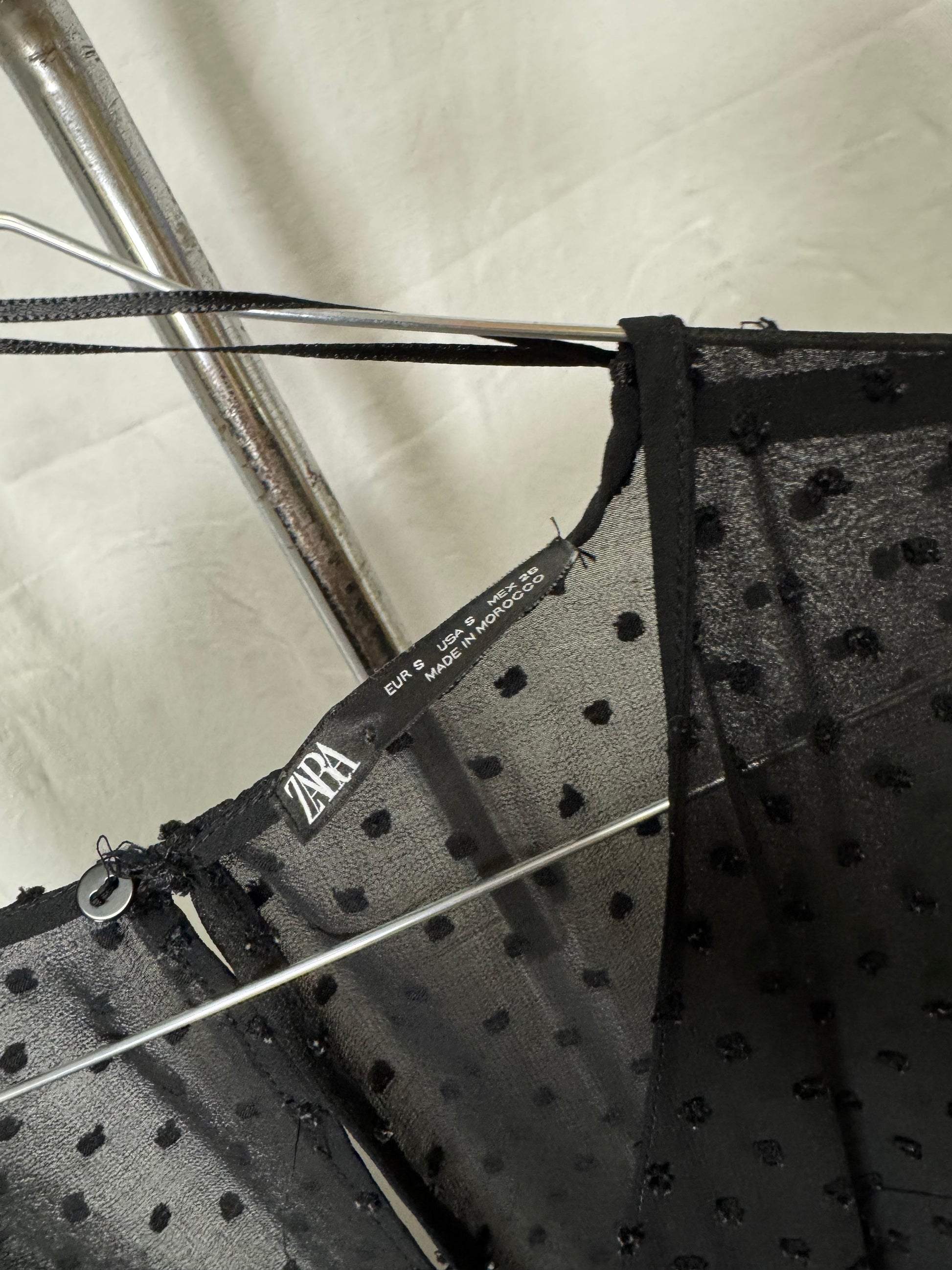 Robe courte noir, plumiers, col v, ouverture dans le dos, légèrement transparente sur le haut, short intégré.