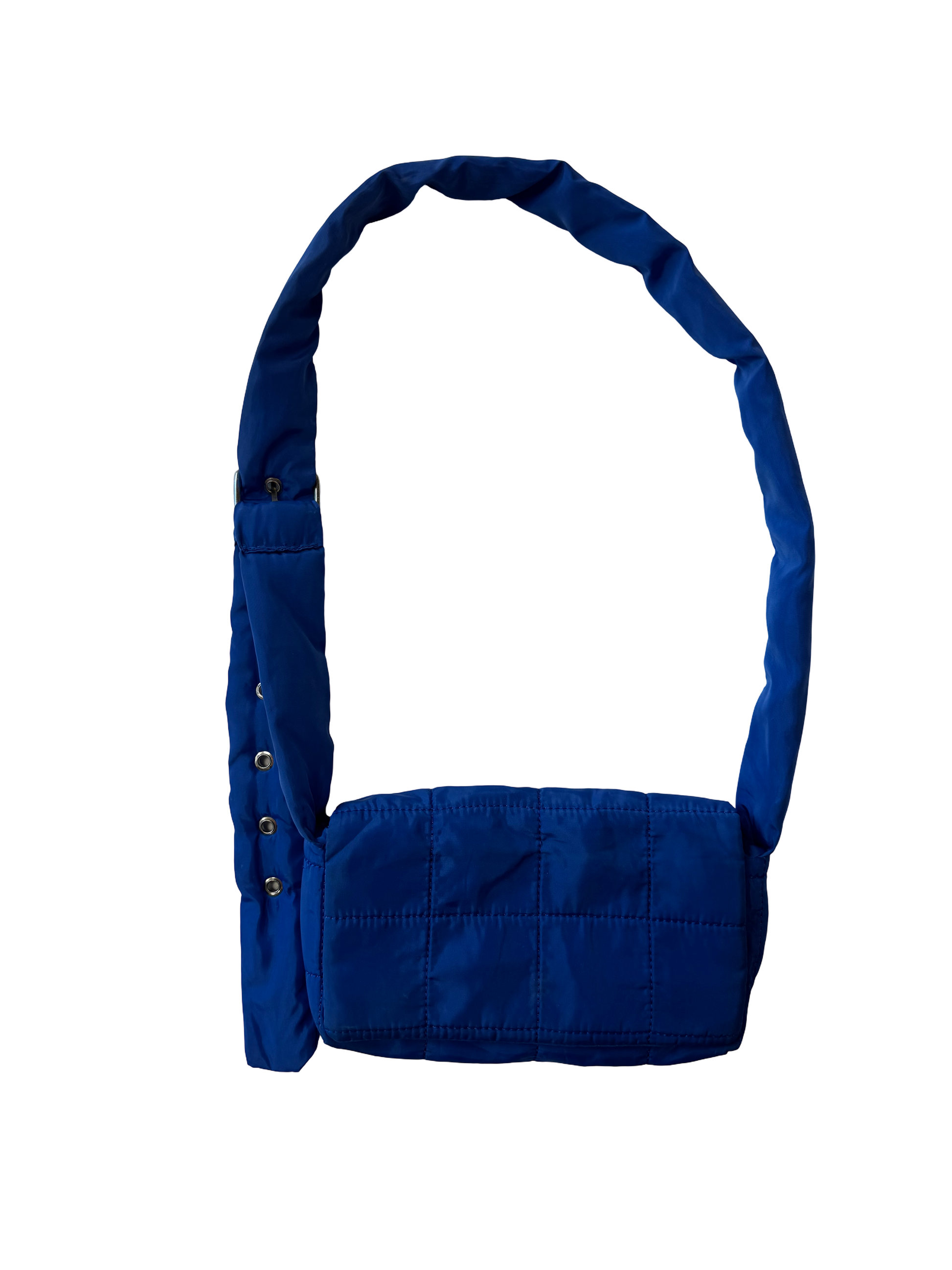 Sac baguette matelassé bleu électrique, bandoulière ajustable