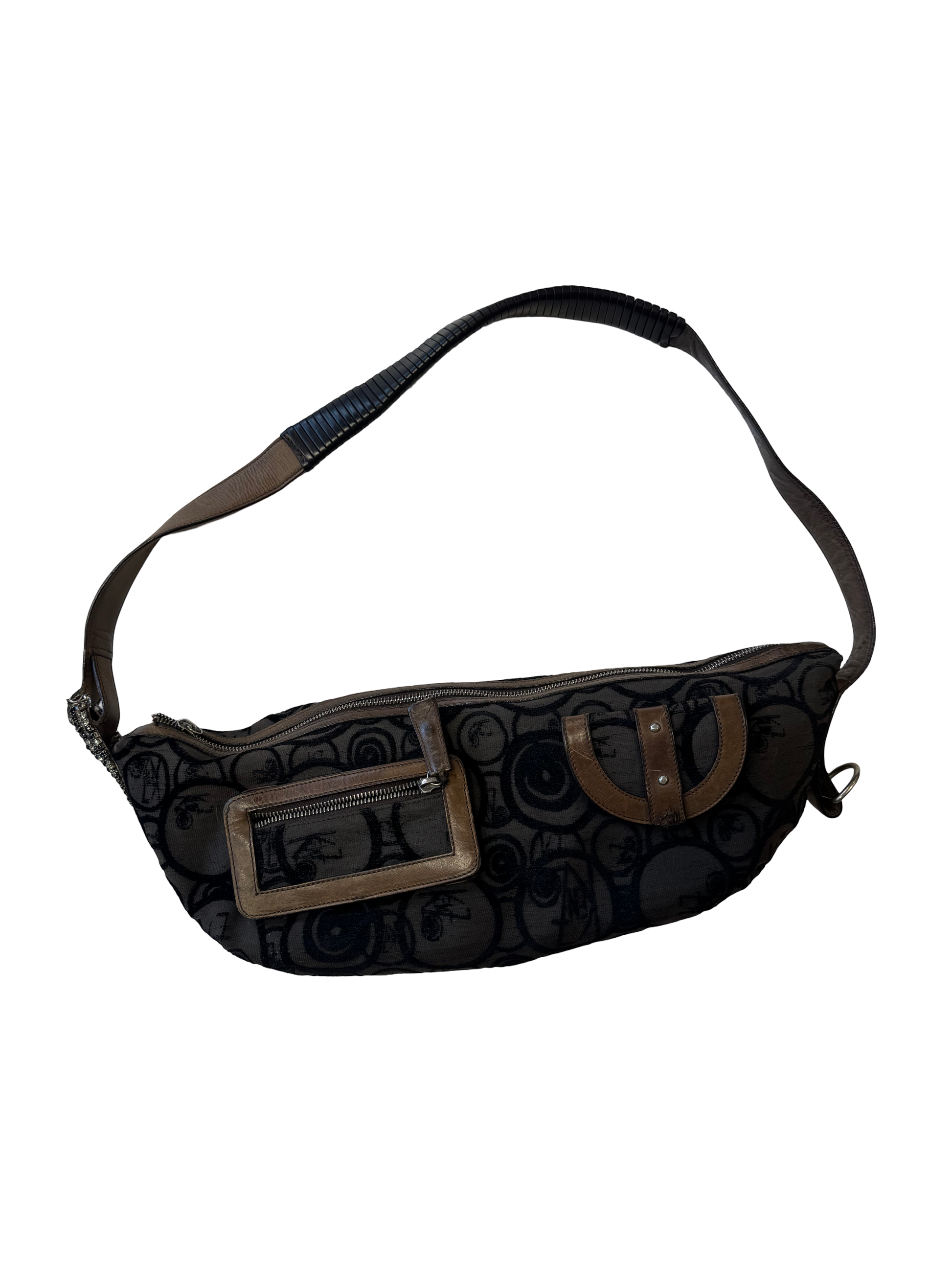 Sac baguette en toile monogram Kenzo, plusieurs poches extérieur.