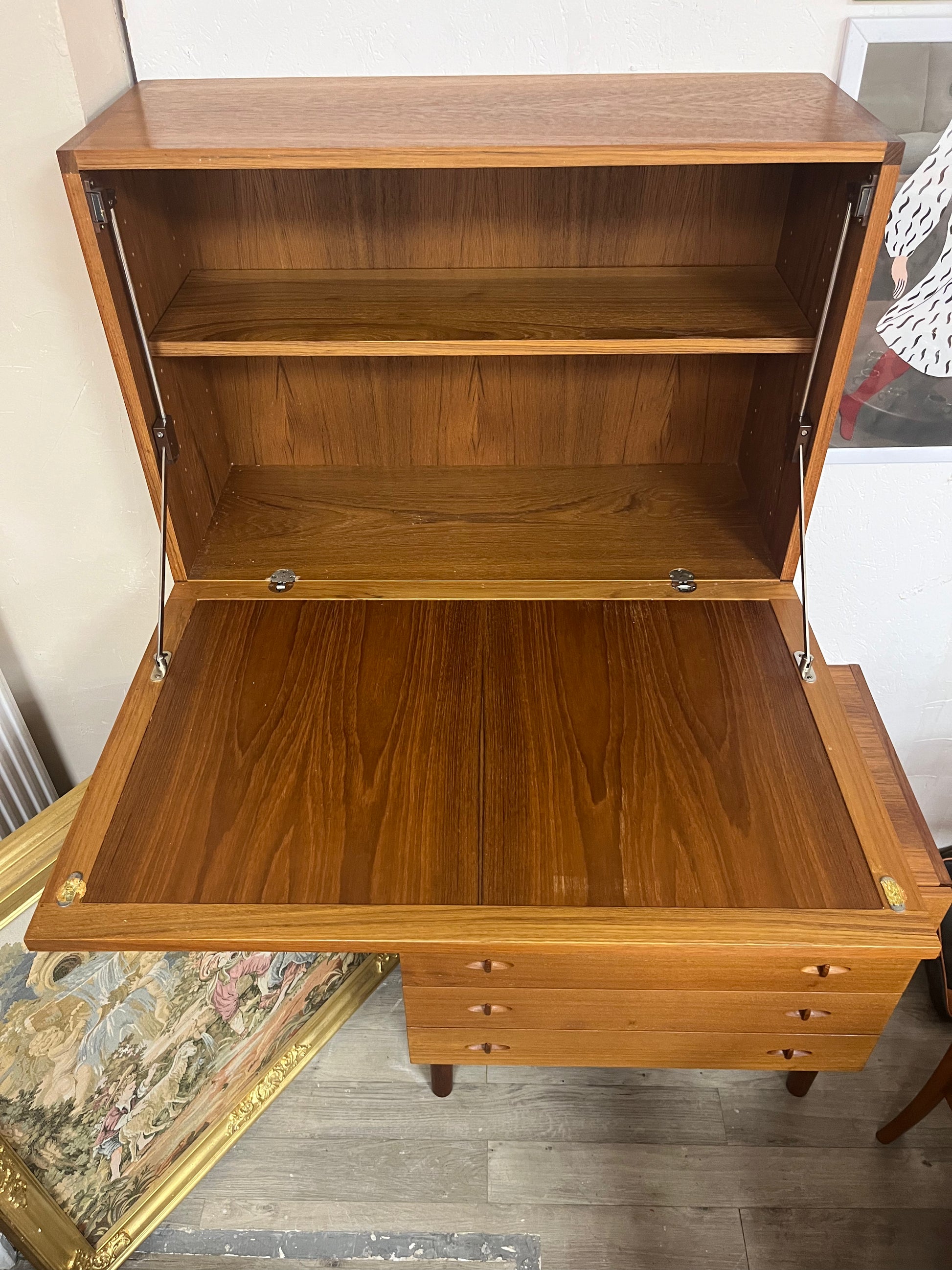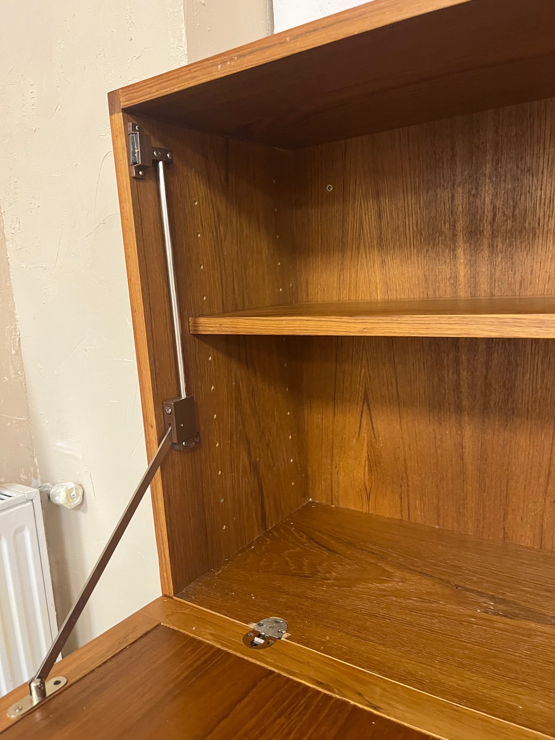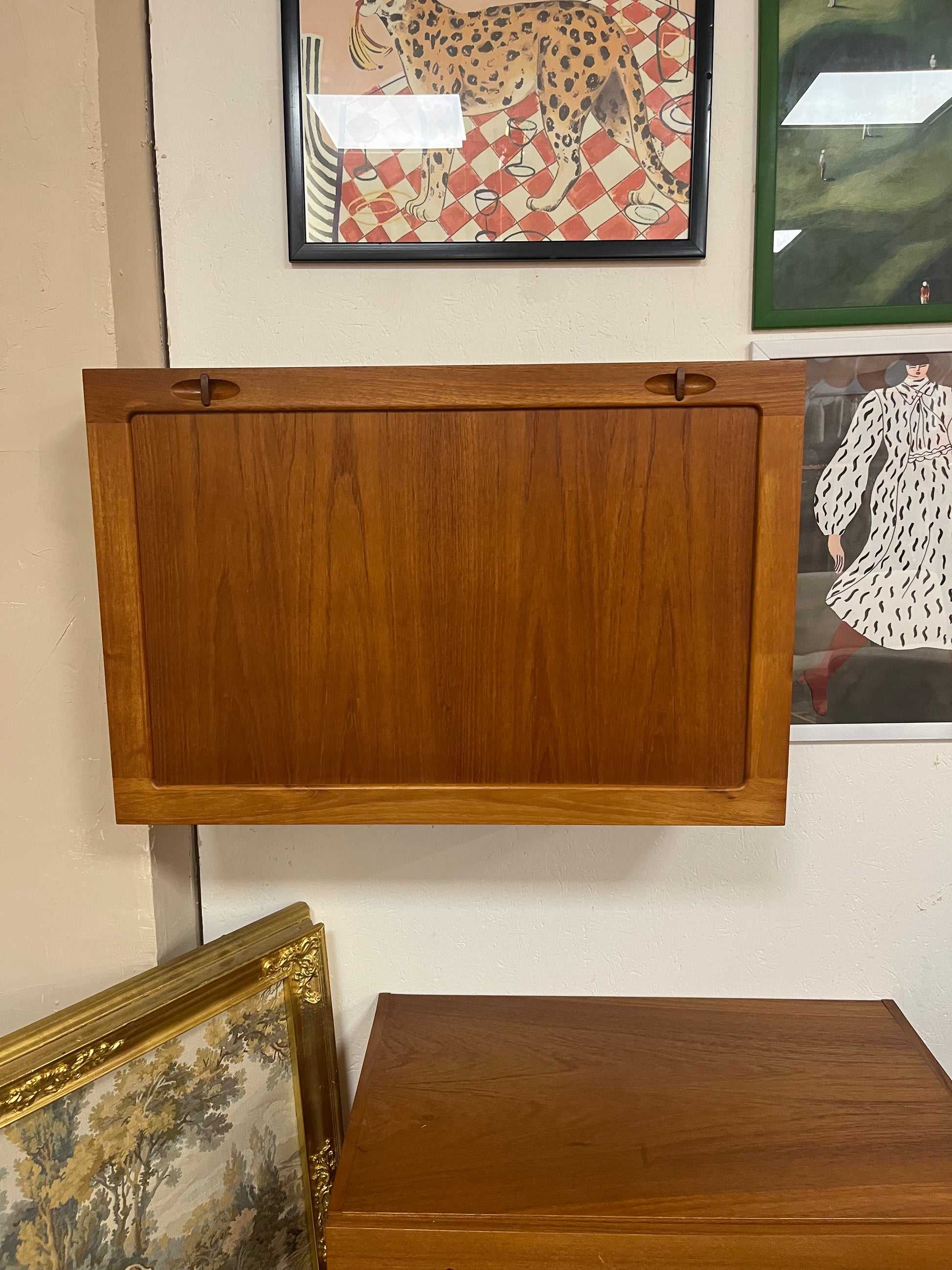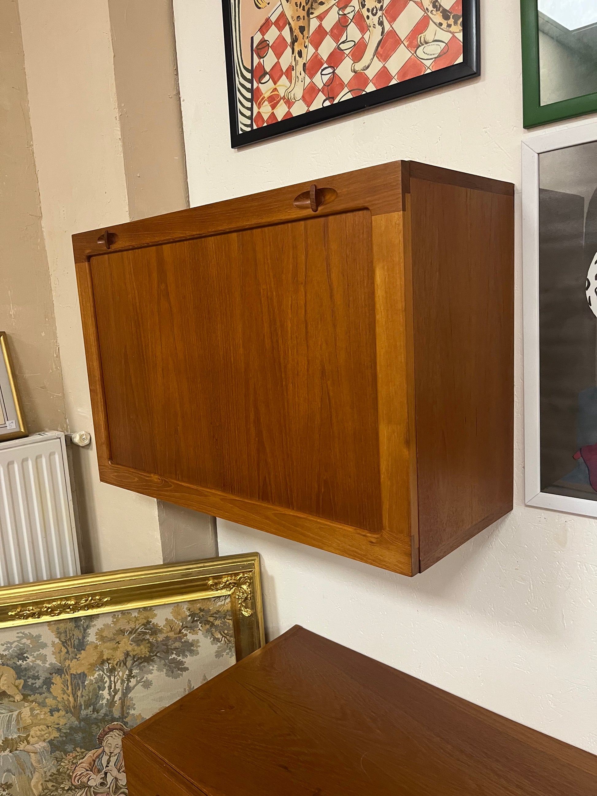 Secrétaire mural scandinave en teck années 70’s. Design de Henry Walter Klein. Raffiné, discret et minimaliste, typique du style scandinave. Il offre un bel espace de travail, robuste et utile.
