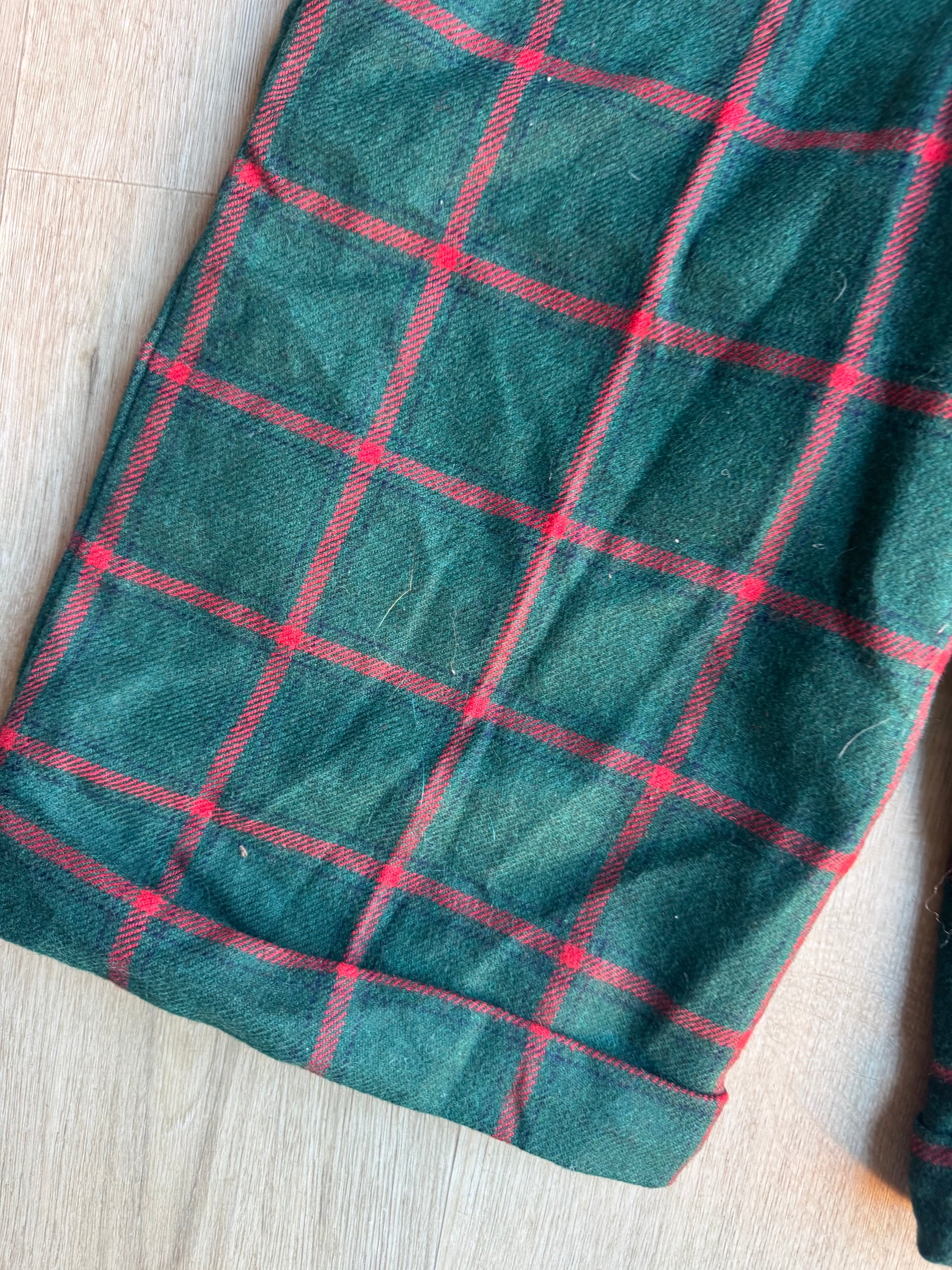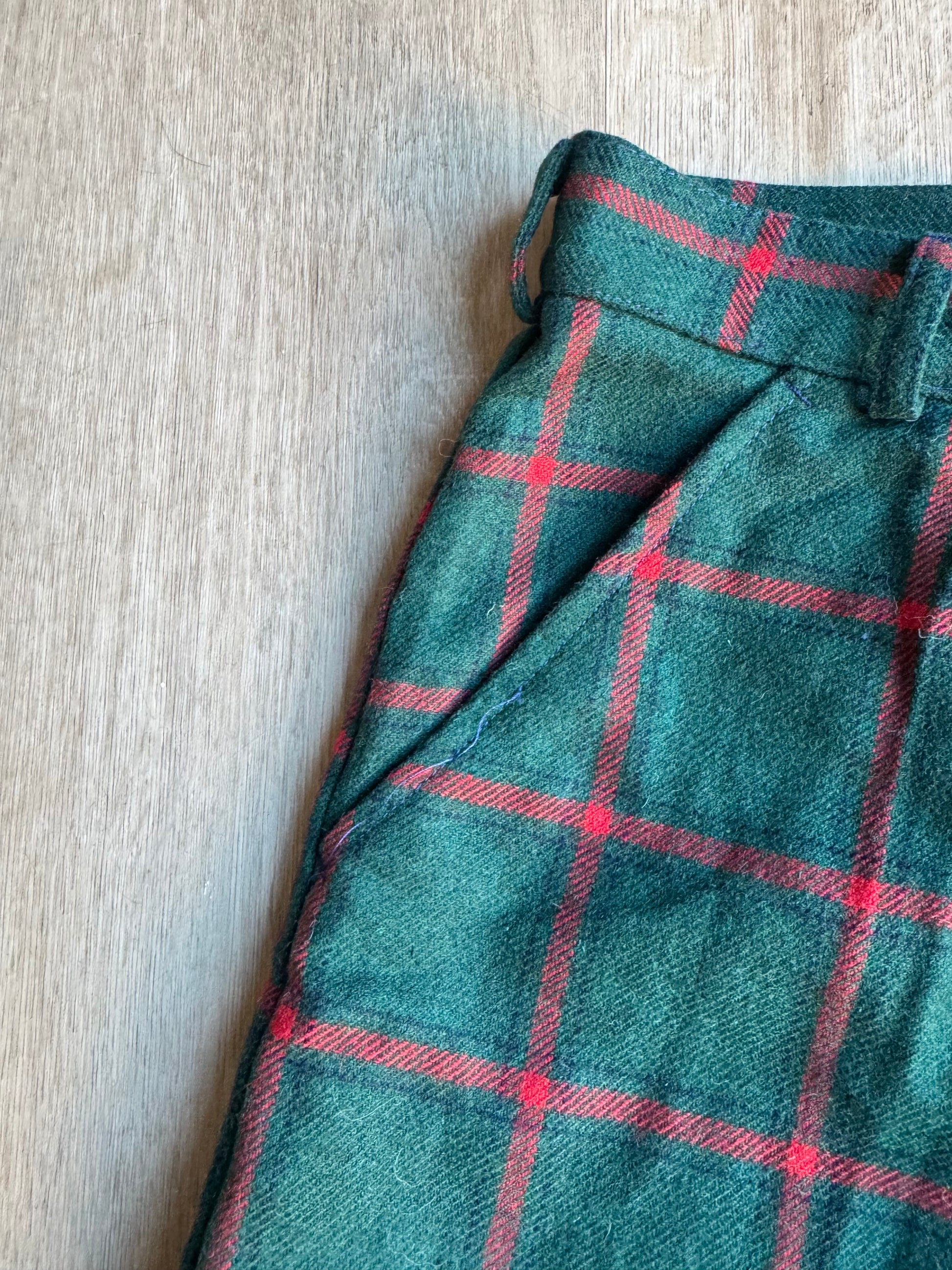 Short long vert, carreaux courge, passant pour une ceinture, deux poches, écossais.