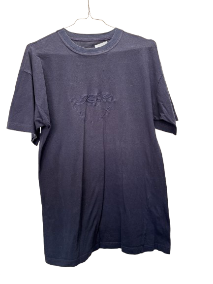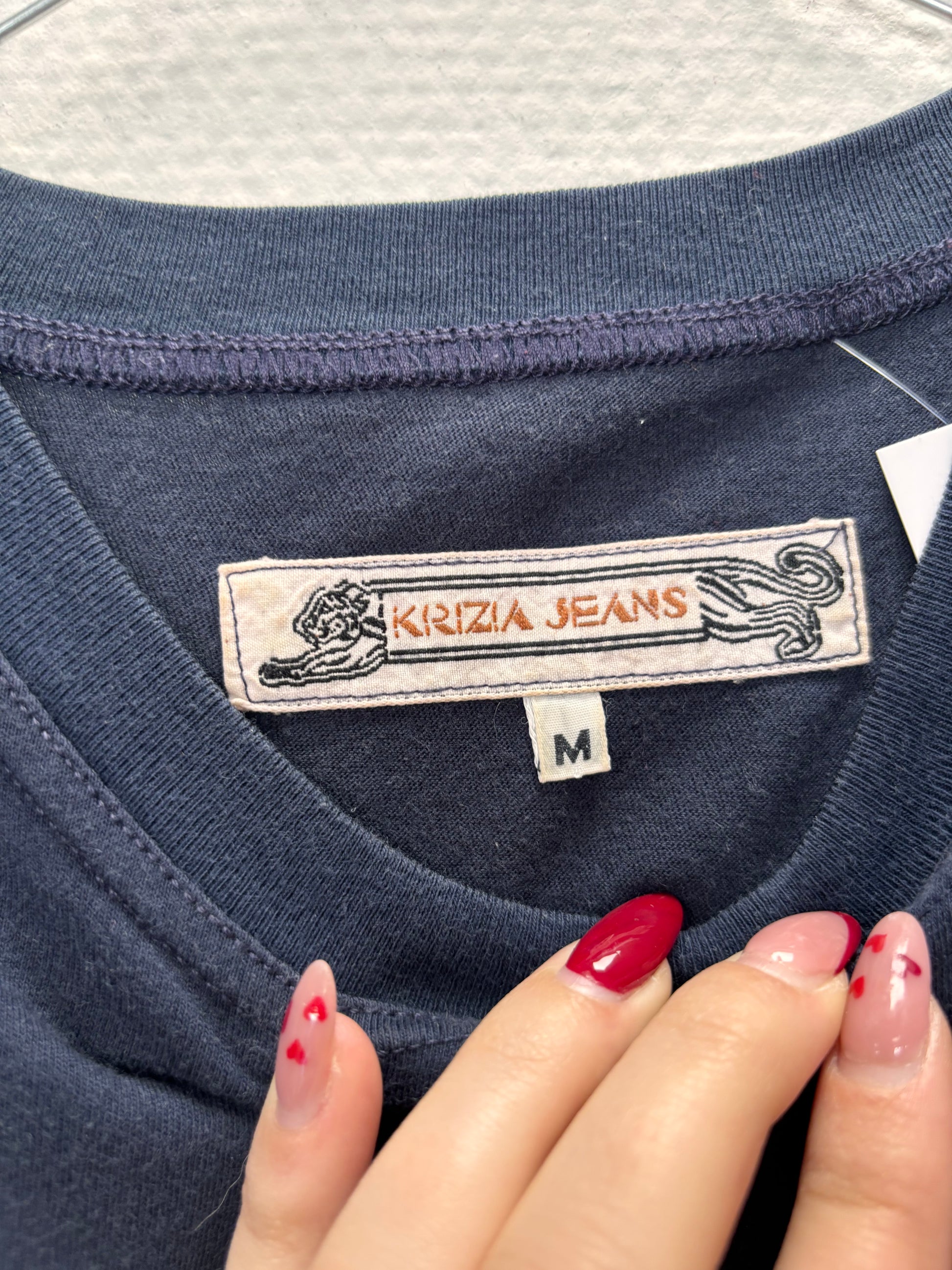 T-shirt bleu marine, broderie avec léopard et inscription "kriizia".
