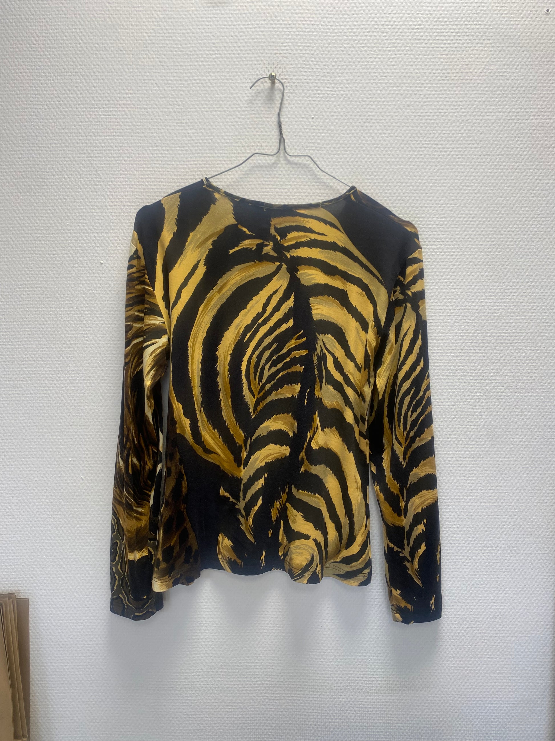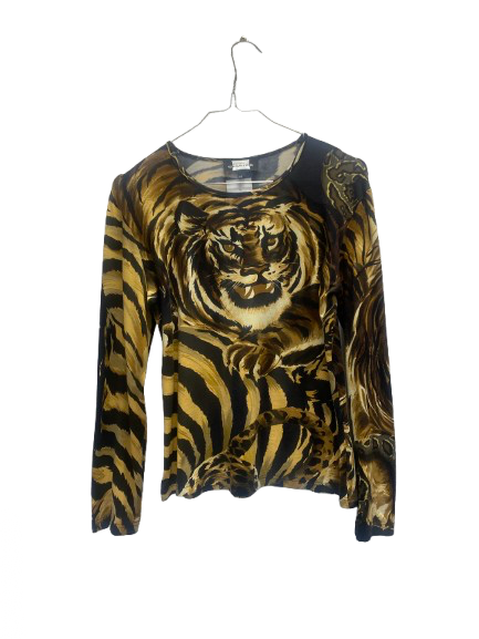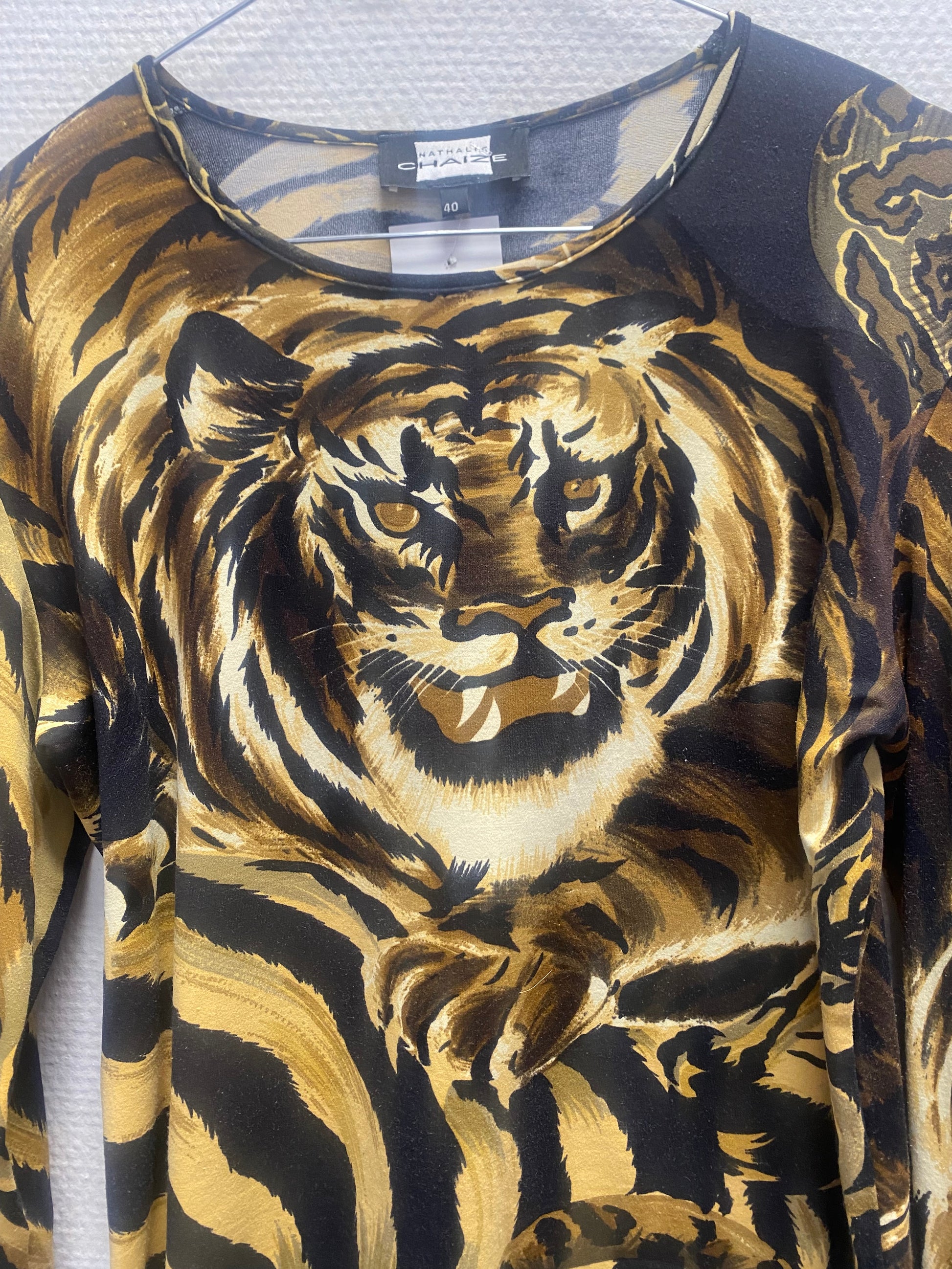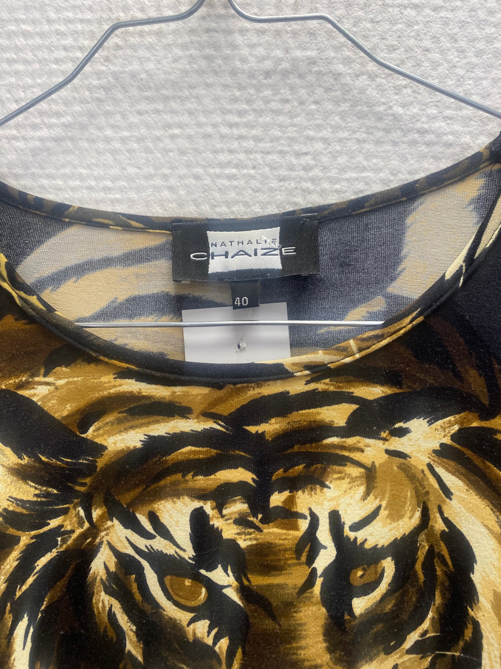 T-shirt à manche longue, motifs trigre marron et noir, col rond.