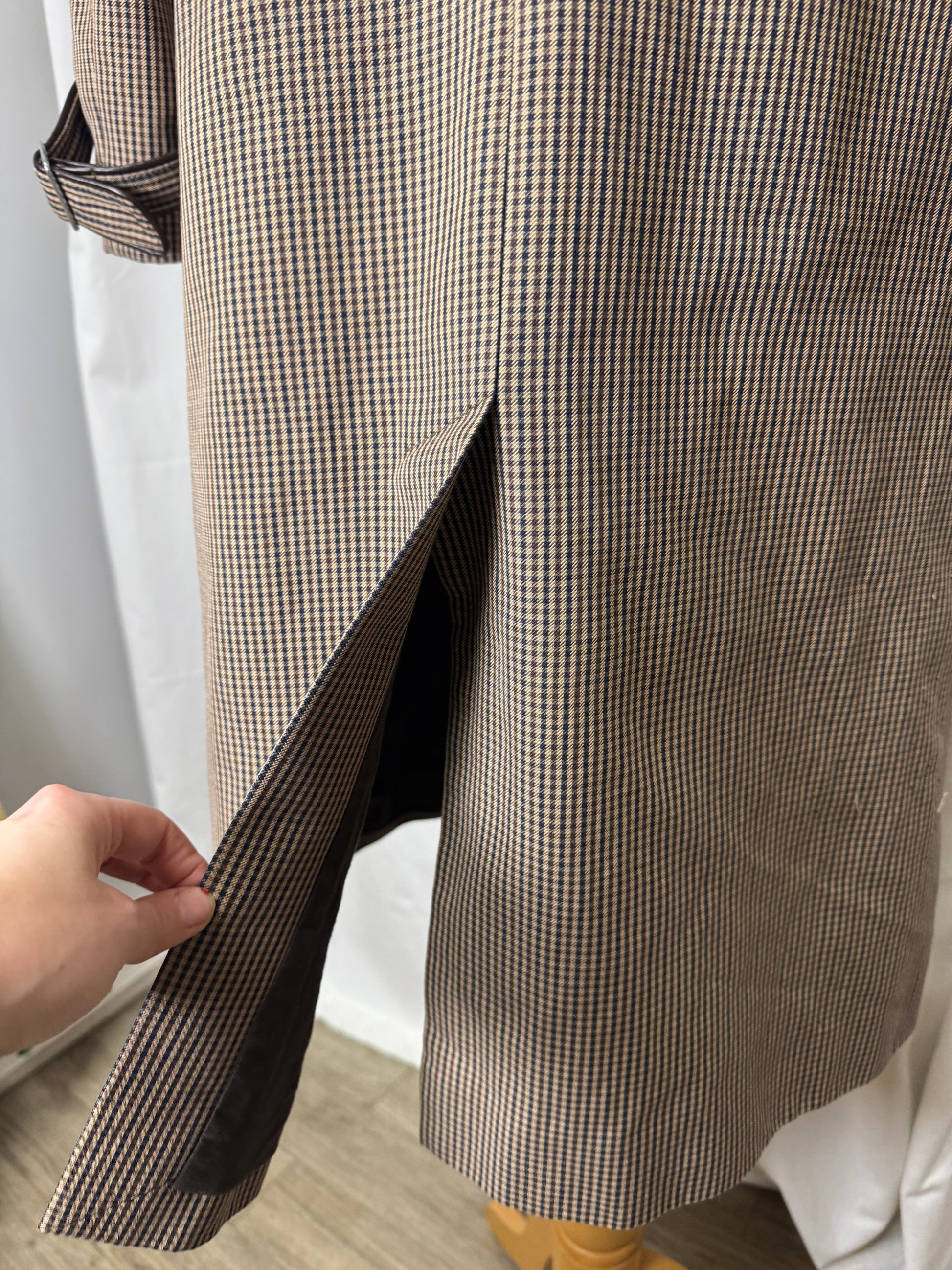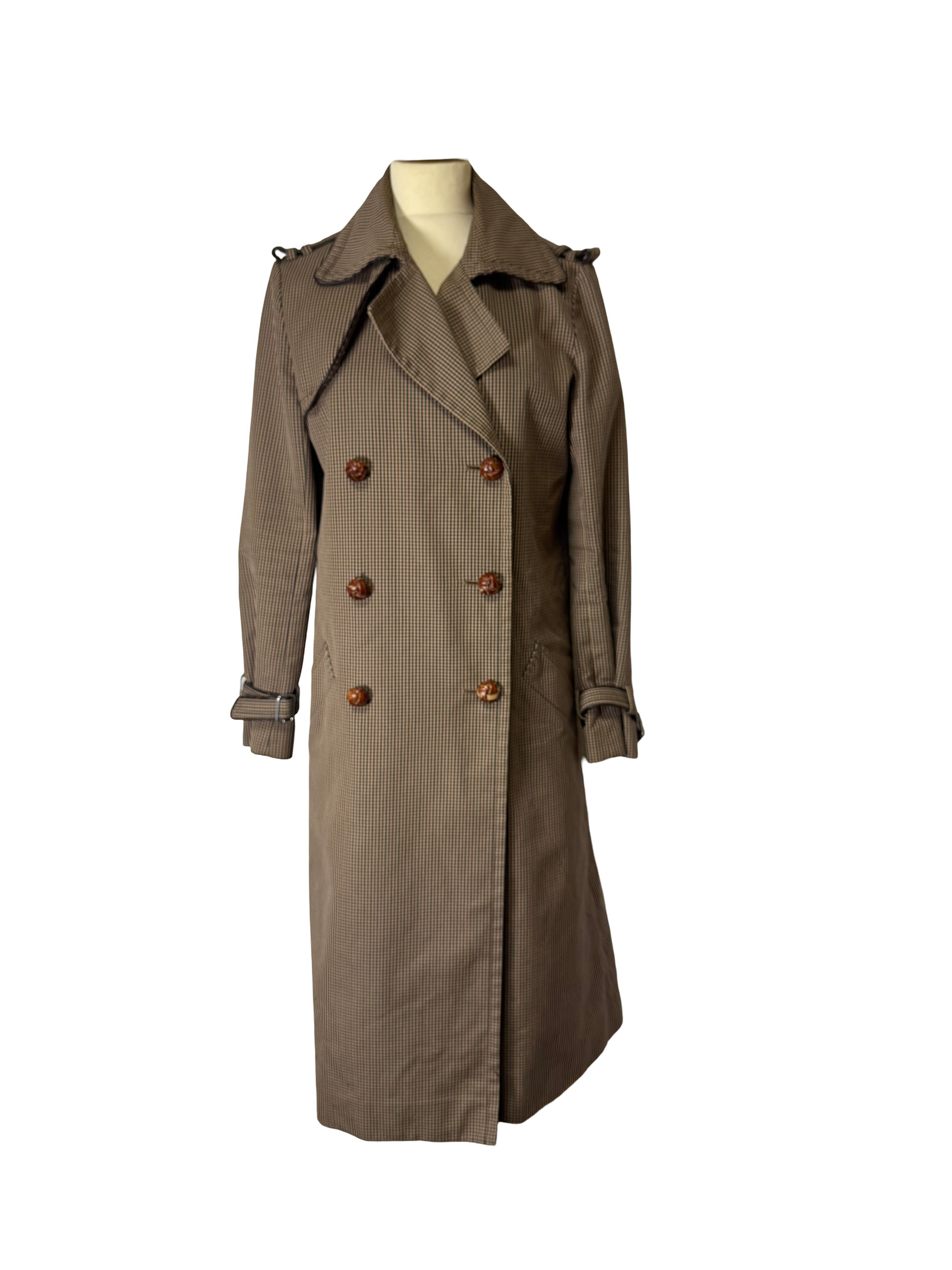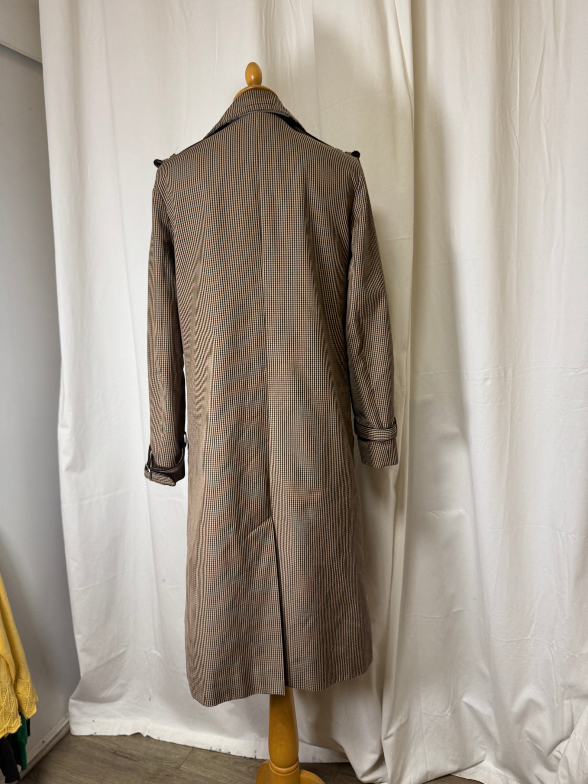 Trench long, droit, carreaux dans les tons marron et beige, deux poches