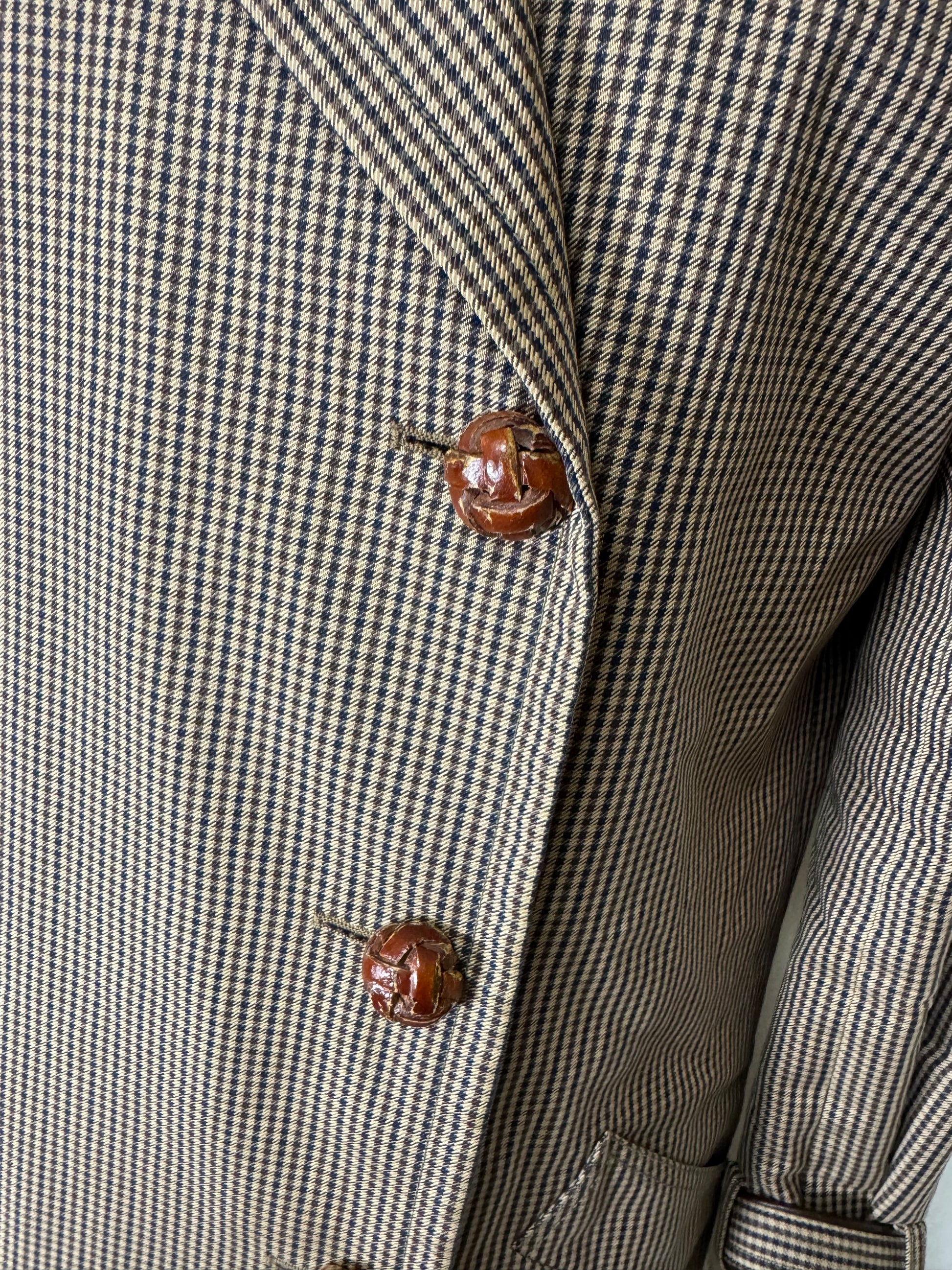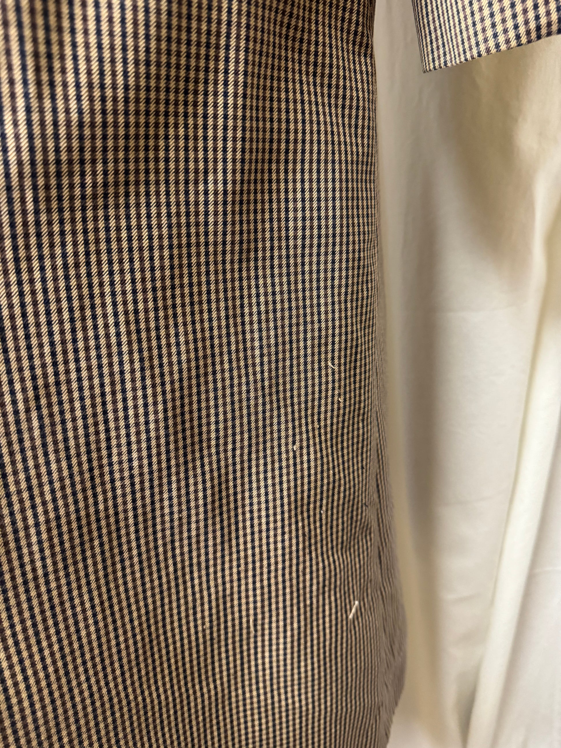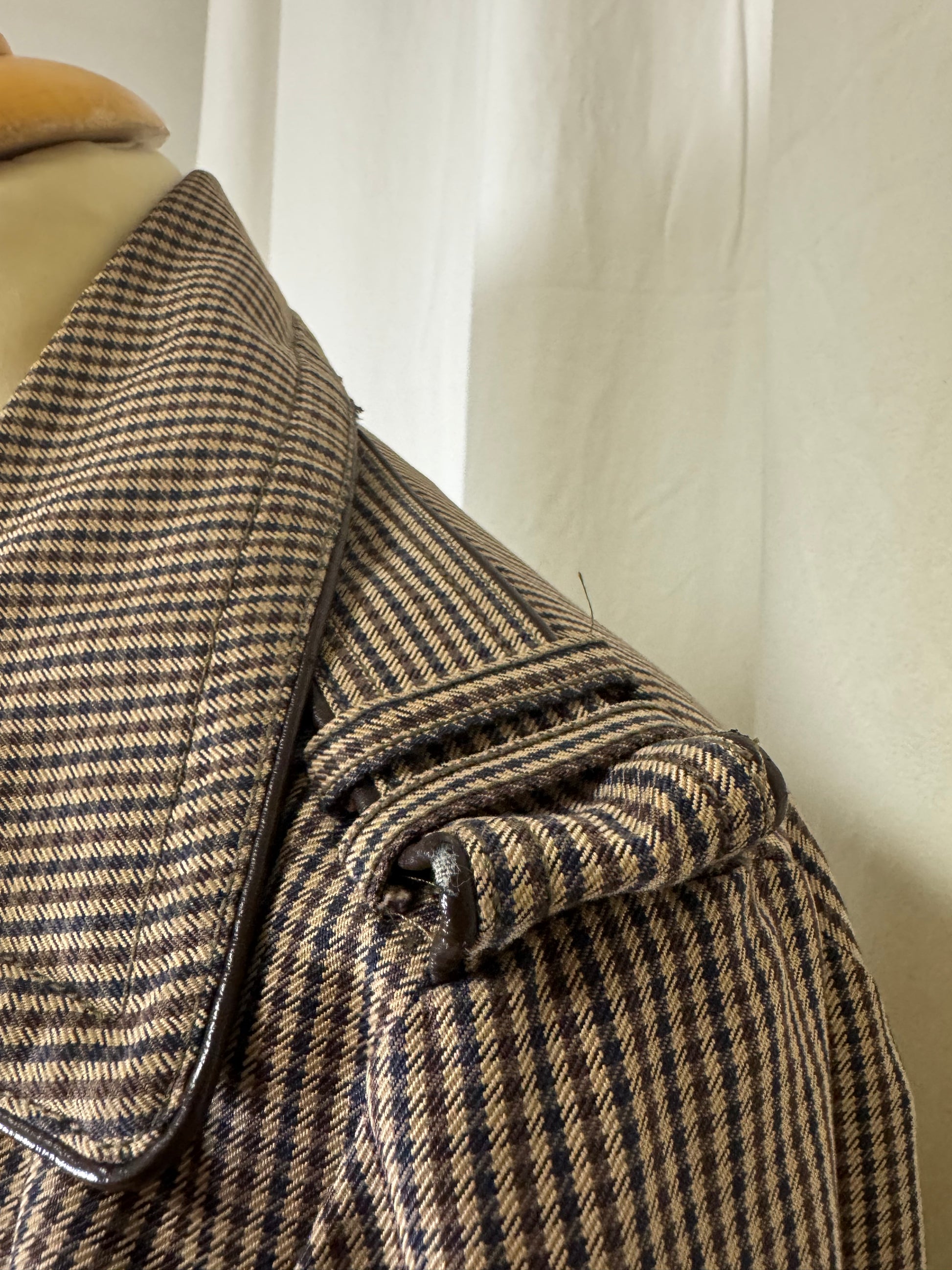 Trench long, droit, carreaux dans les tons marron et beige, deux poches