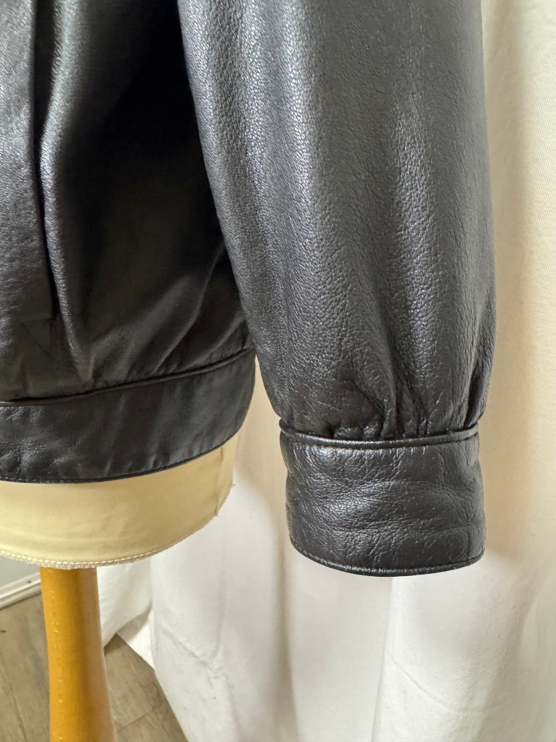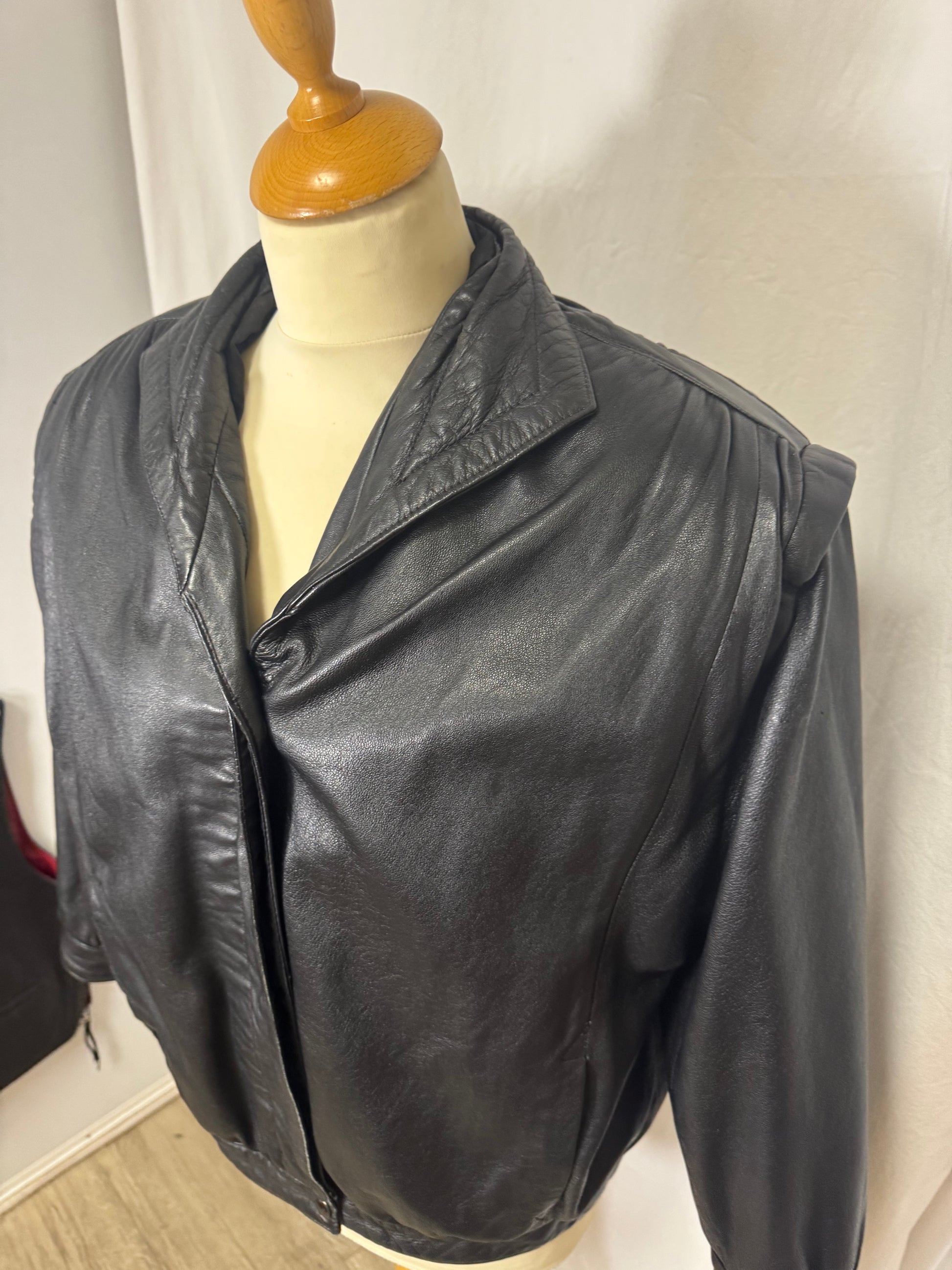 Veste courte en cuir, fermeture par boutons pressions, coupe large.